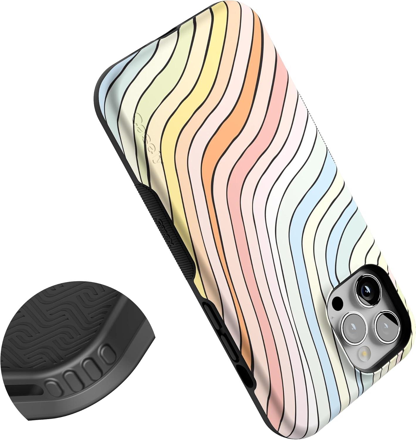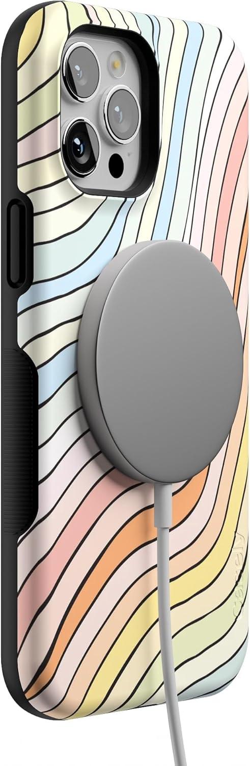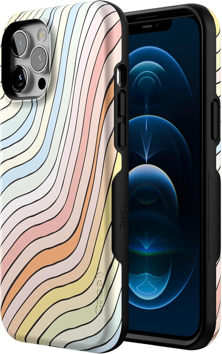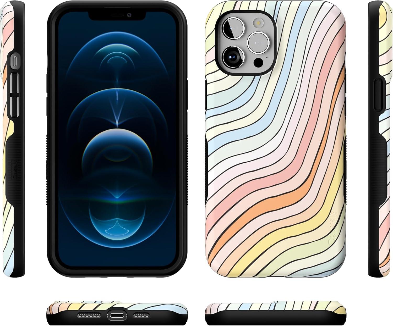 Casely iPhone 12 Pro Max Case | Mystic Meadow | Green Gardens | Bold Protective Design | MagSafe Compatible Design(Ride The Wave | Pastel Rainbow Lined)
