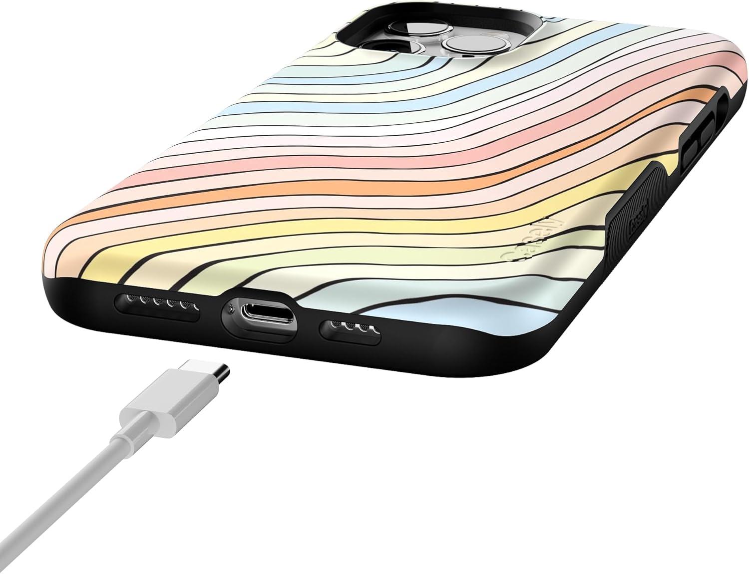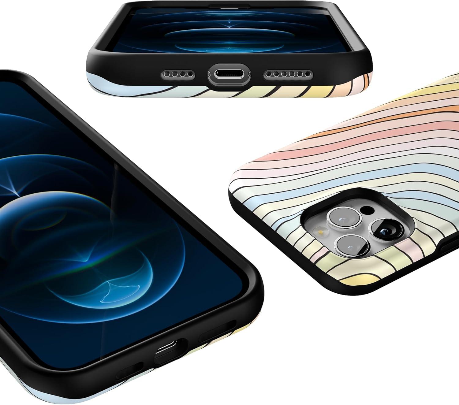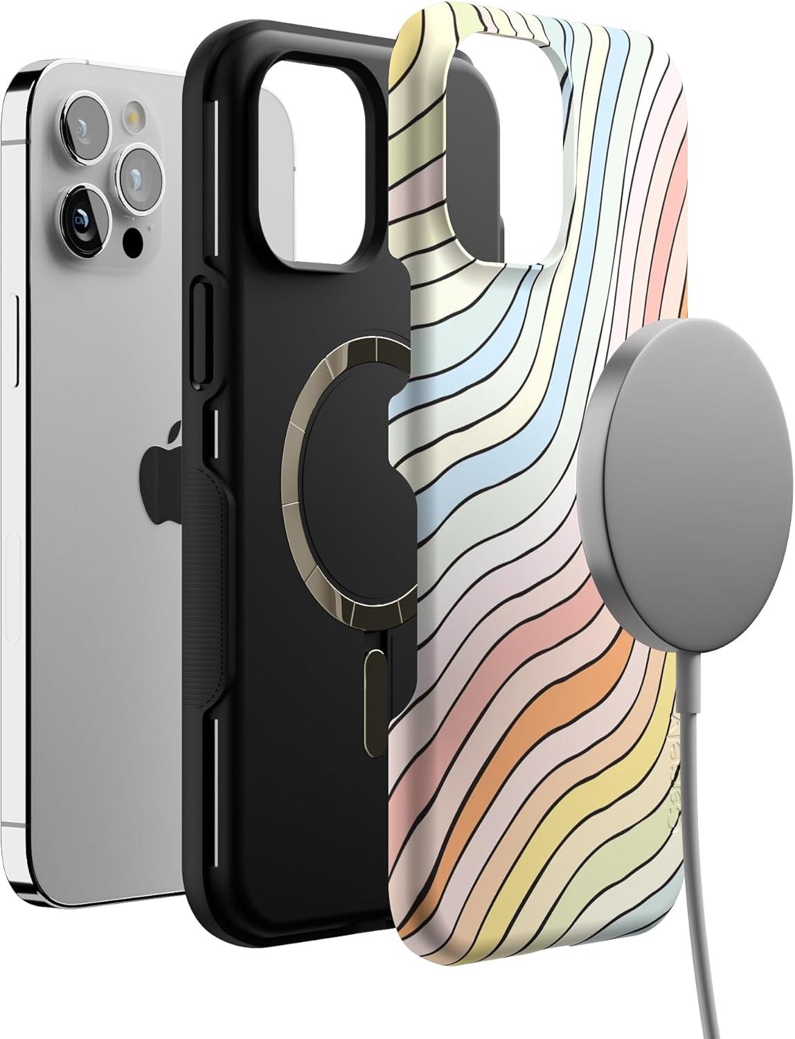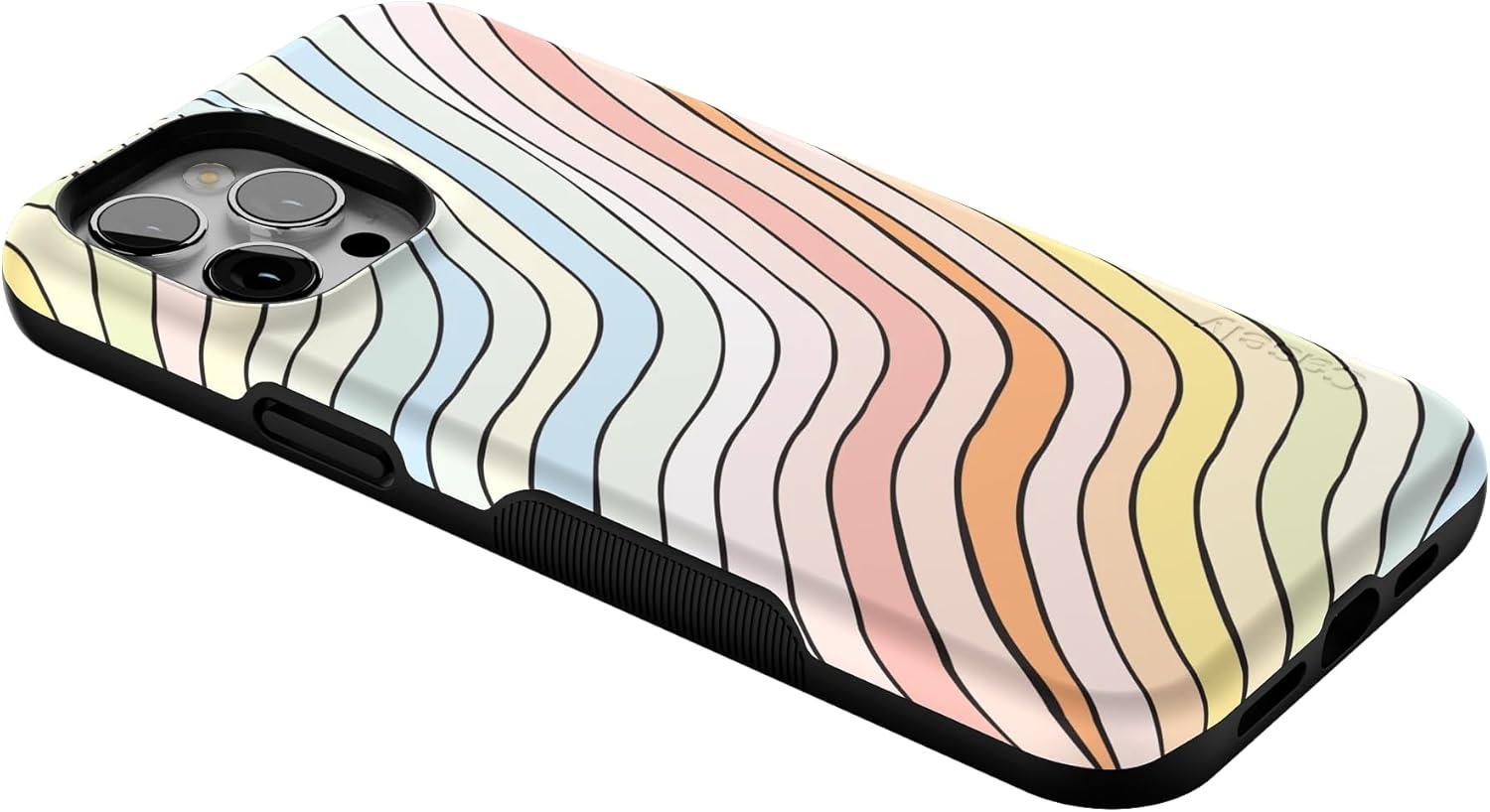 Casely iPhone 12 Pro Max Case | Mystic Meadow | Green Gardens | Bold Protective Design | MagSafe Compatible Design(Ride The Wave | Pastel Rainbow Lined)