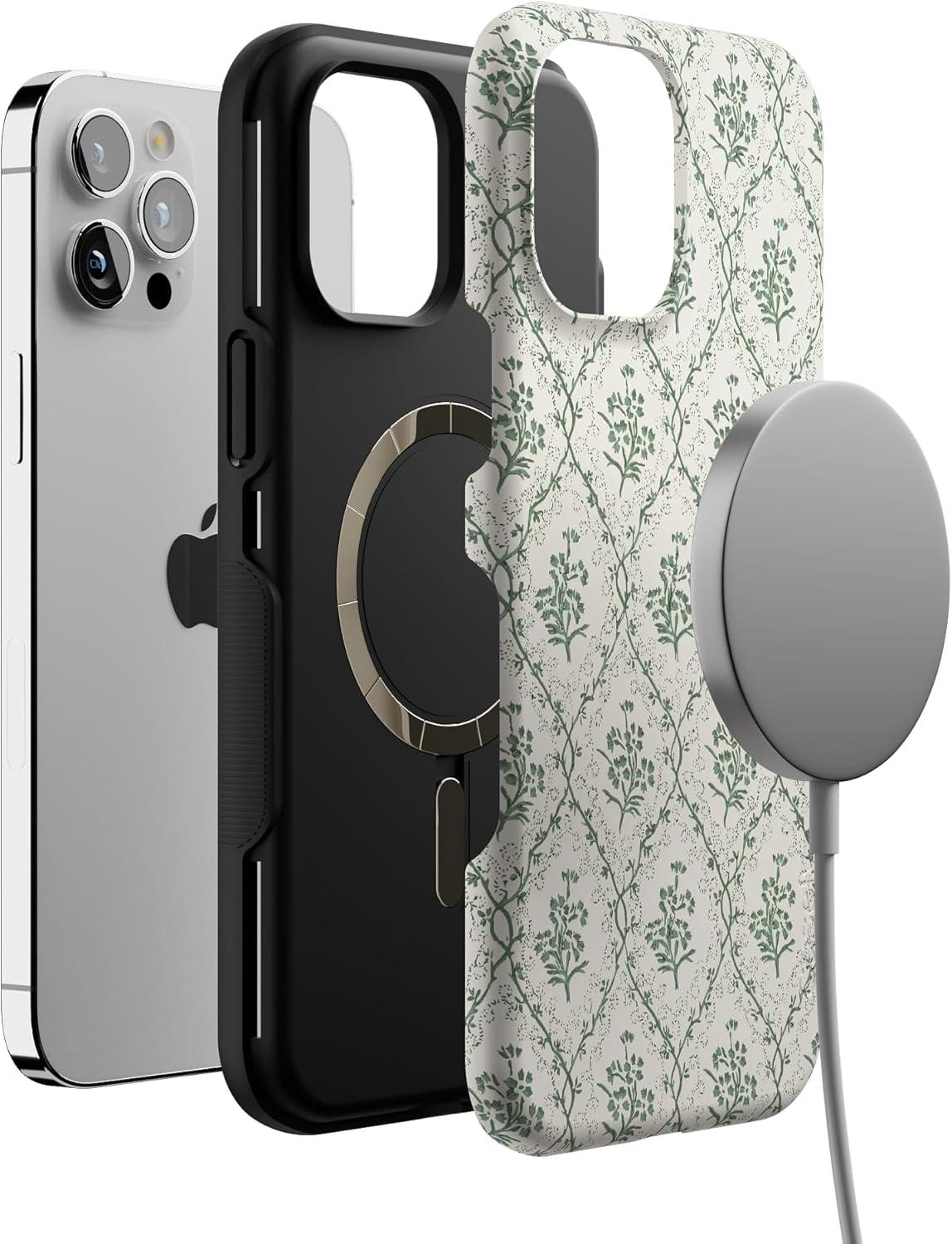 Casely iPhone 12 Pro Max Case | Mystic Meadow | Green Gardens | Bold Protective Design | MagSafe Compatible Design(Sage Tapestry | Floral Vines)
