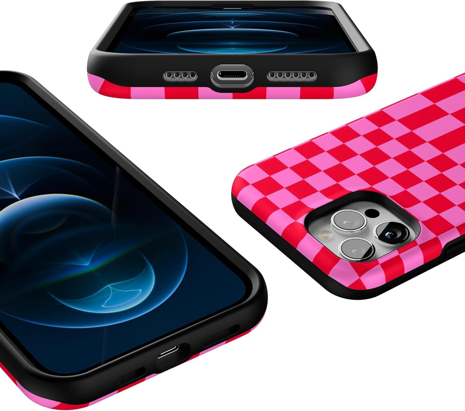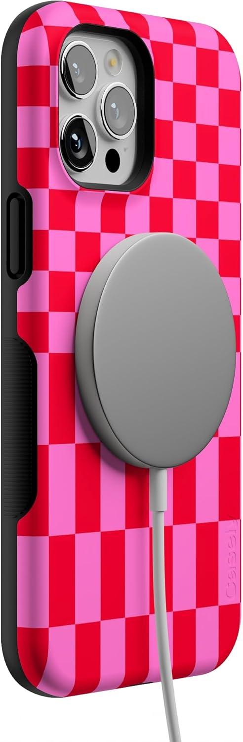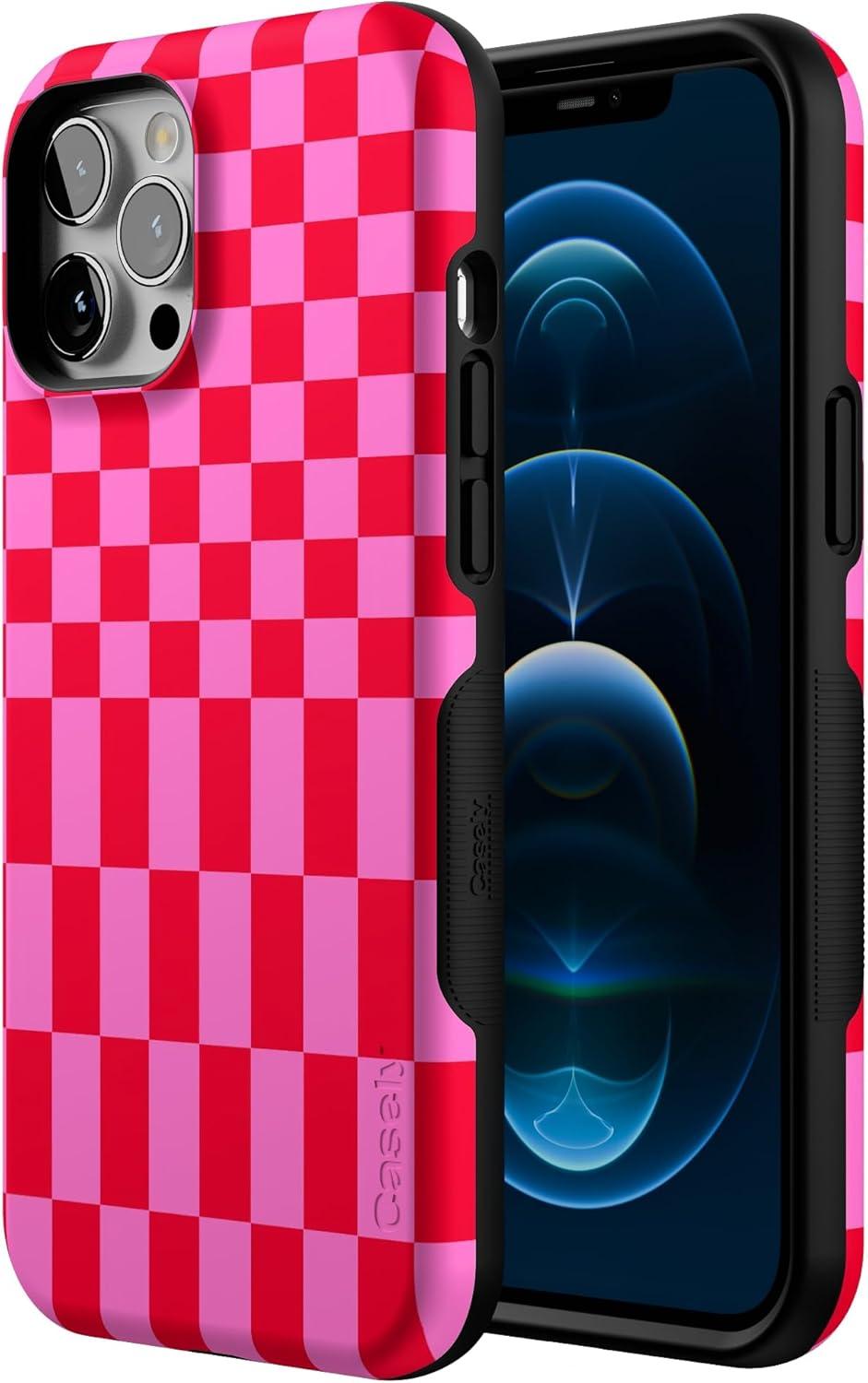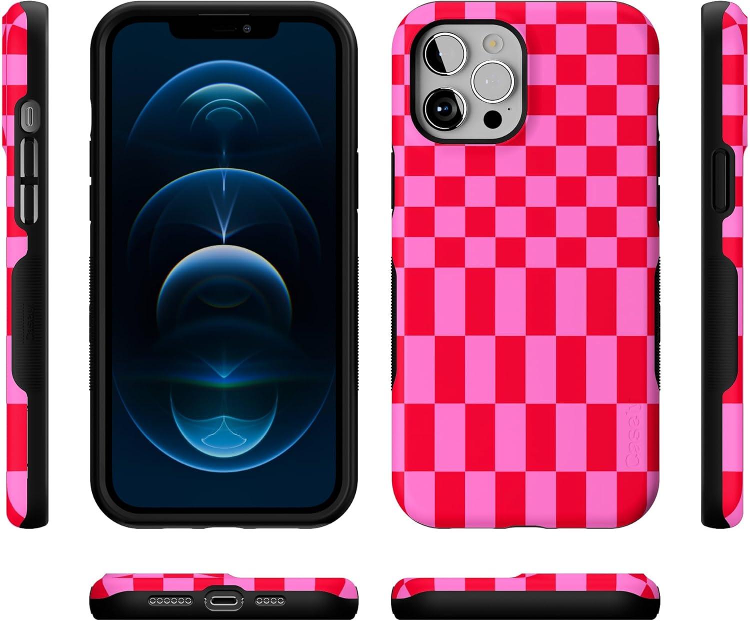 Casely iPhone 12 Pro Max Case | Mystic Meadow | Green Gardens | Bold Protective Design | MagSafe Compatible Design(Vibe Check | Pink Checkerboard)