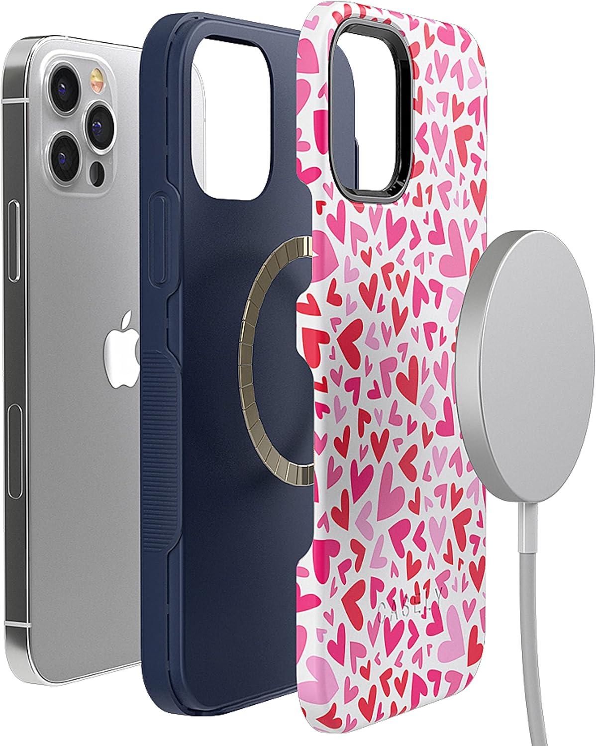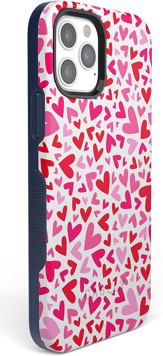 Casely iPhone 12 Pro Max Case | Mystic Meadow | Green Gardens | Bold Protective Design | MagSafe Compatible Design(XOXO | Pink Candy Hearts)