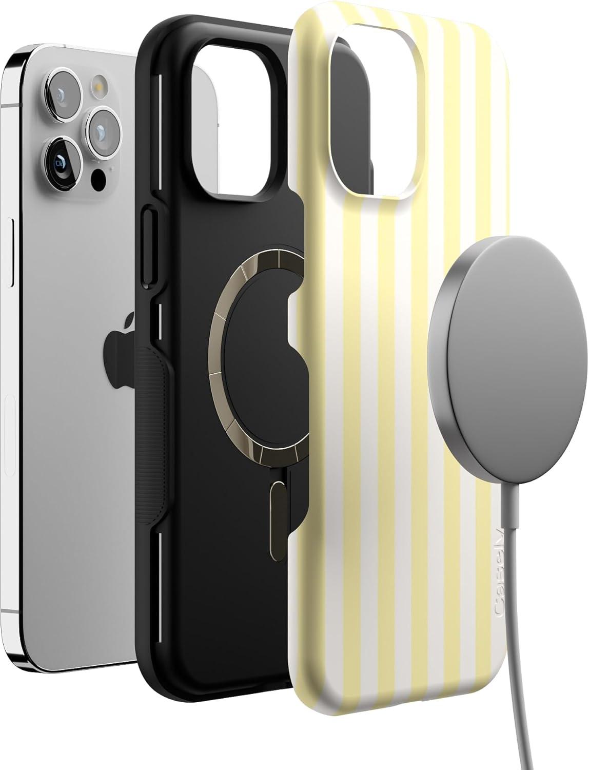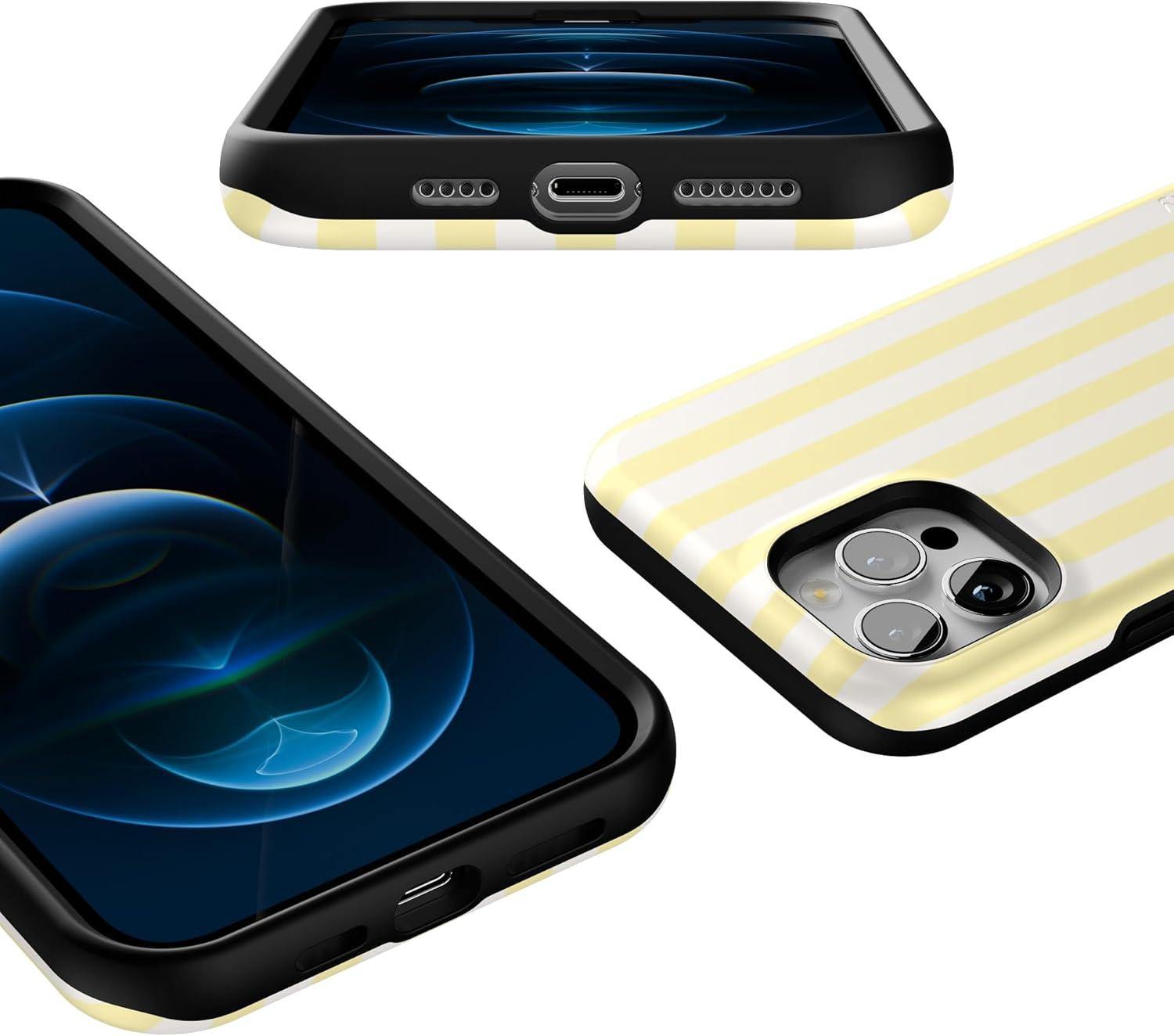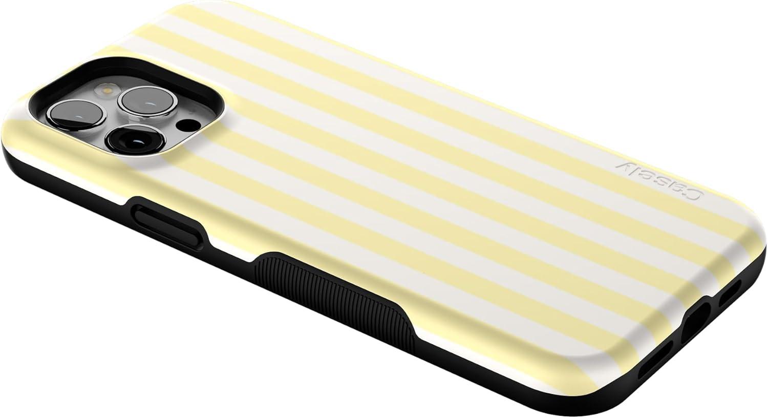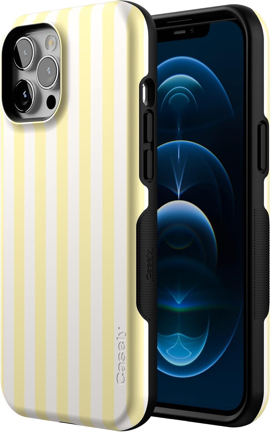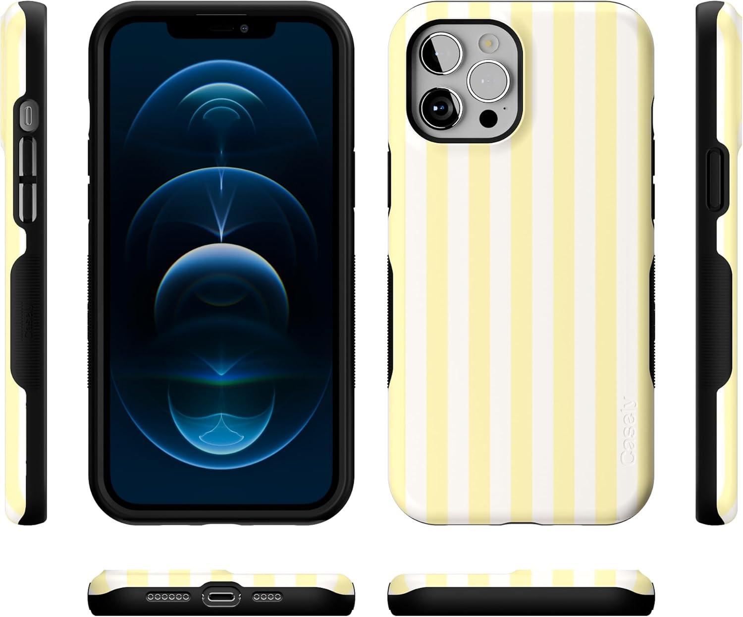 Casely iPhone 12 Pro Max Case | Mystic Meadow | Green Gardens | Bold Protective Design | MagSafe Compatible Design(Yellow Stripes | Sunday Best)