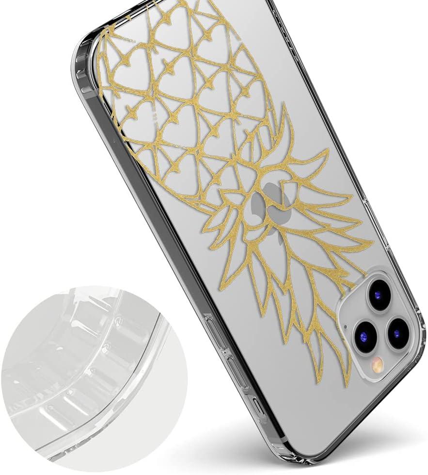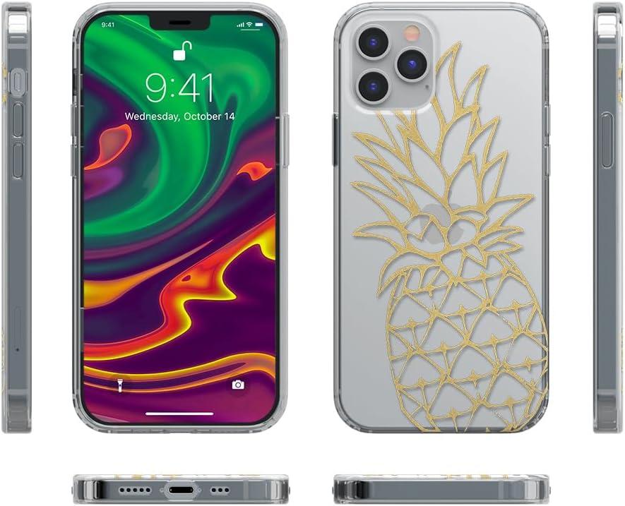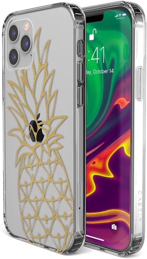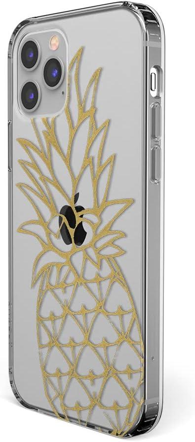 Casely iPhone 12 Pro Max Case | Vida y Muerte | Frida Kahlo Dotted Skull Case(You’re a Fine-Apple | Gold Pineapple Clear)