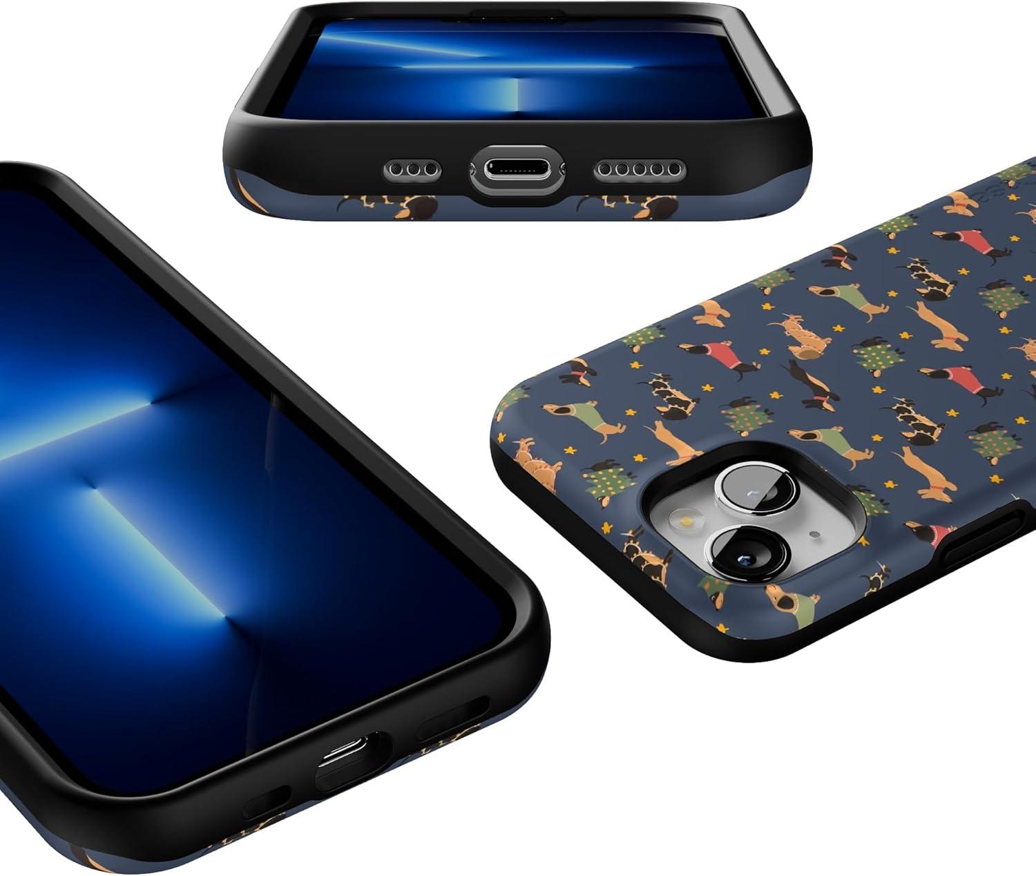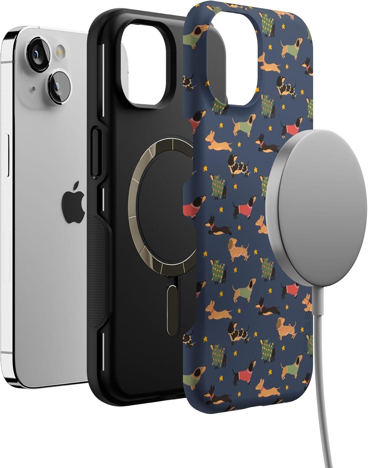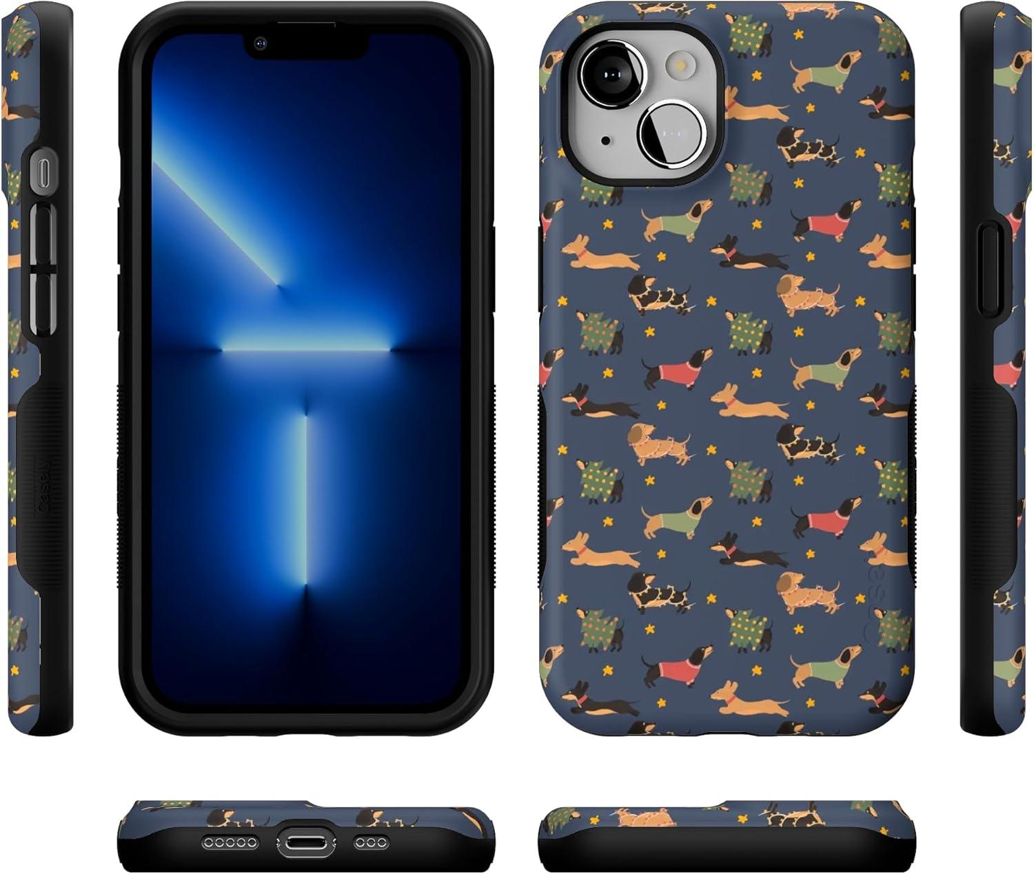 Casely iPhone 13 Case | Dashing Doxies | Dachshund Dog | Bold Protective Design | MagSafe Compatible Design