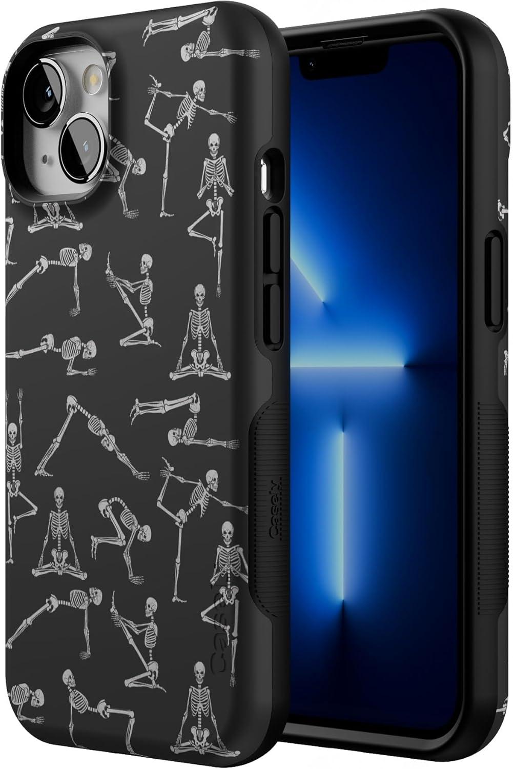 Casely iPhone 13 Case | Field of Flowers | Pastel Floral | Compatible with MagSafe | Bold Protective Design(Corpse Pose | Skeleton Yoga)