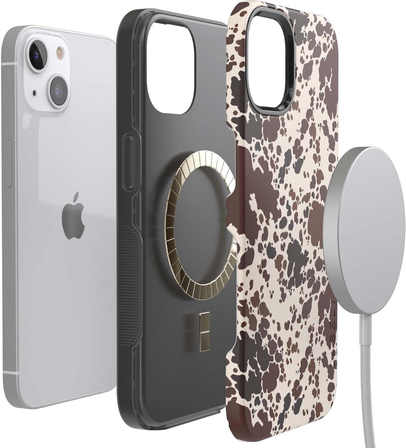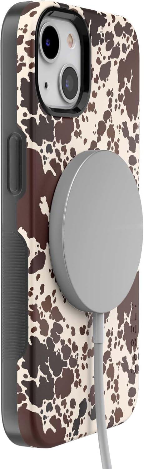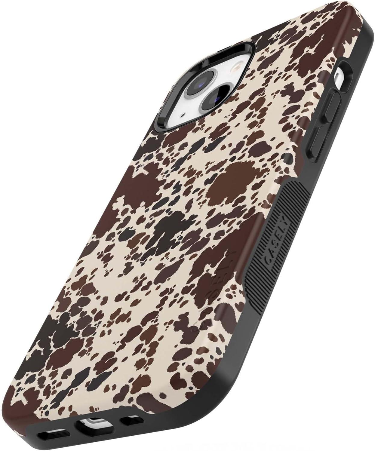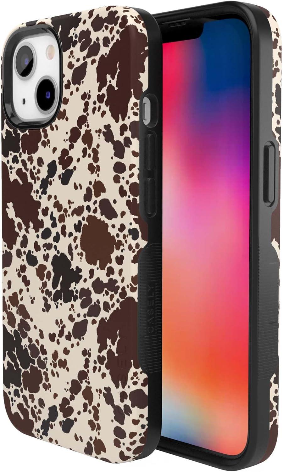 Casely iPhone 13 Case | Field of Flowers | Pastel Floral | Compatible with MagSafe | Bold Protective Design(Cowgirl Envy | Cow Print)