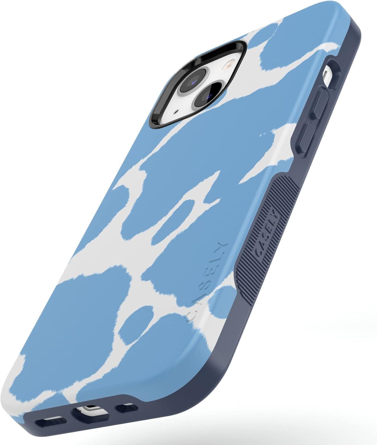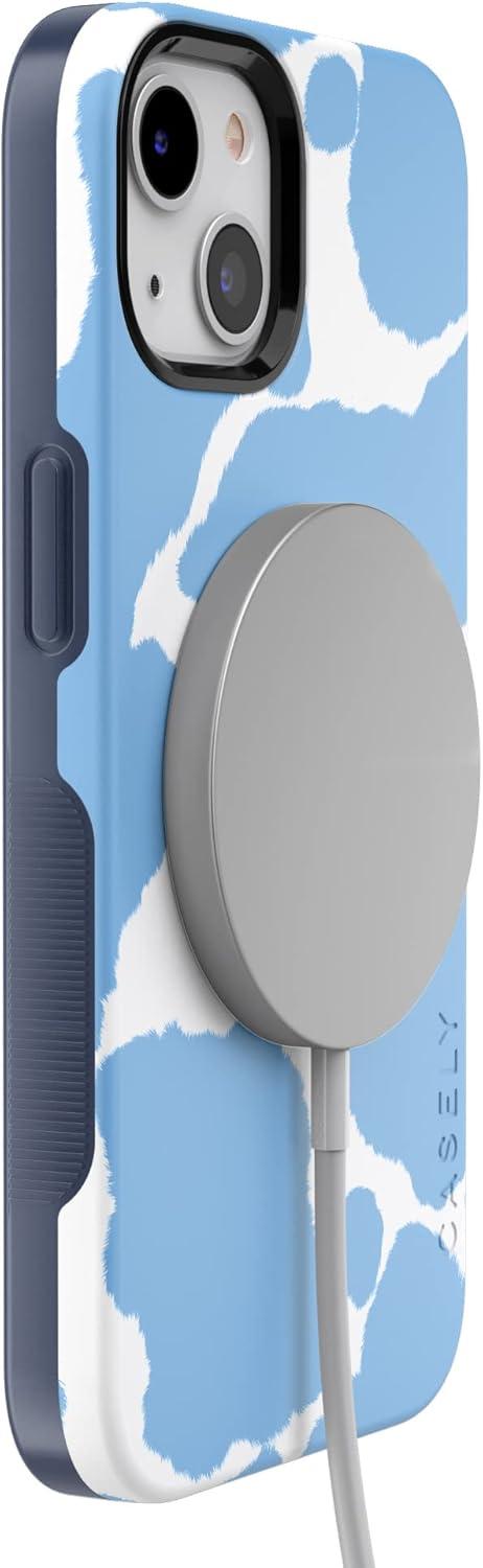 Casely iPhone 13 Case | Field of Flowers | Pastel Floral | Compatible with MagSafe | Bold Protective Design(Current MOOd | Light Blue Cow Print)