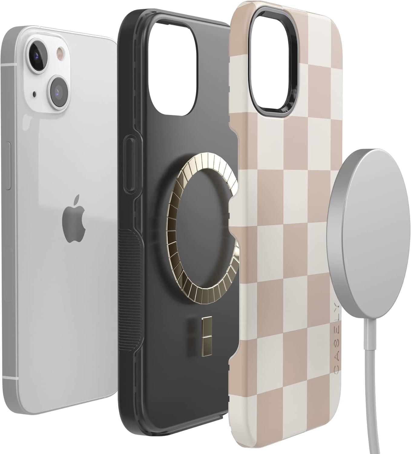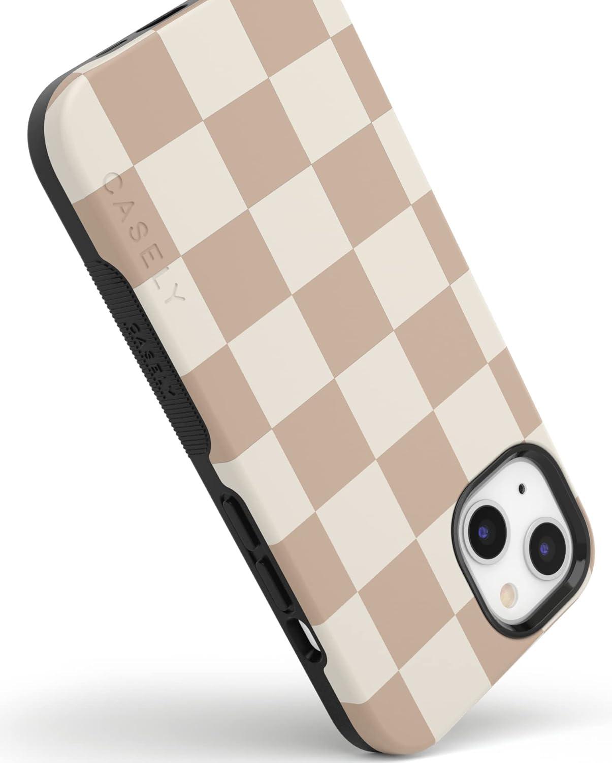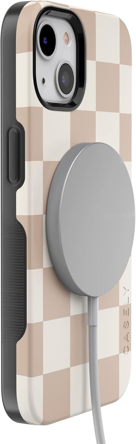 Casely iPhone 13 Case | Field of Flowers | Pastel Floral | Compatible with MagSafe | Bold Protective Design(Fit Check | Neutral Checkerboard)