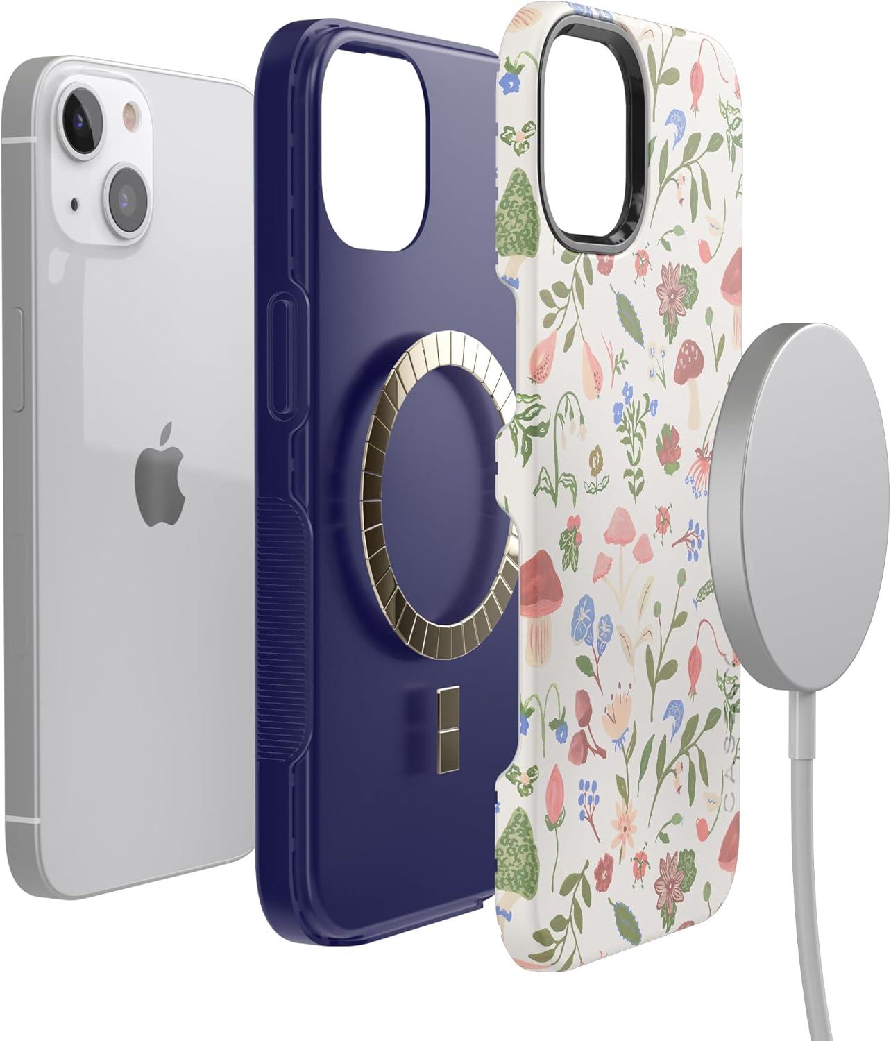 Casely iPhone 13 Case | Field of Flowers | Pastel Floral | Compatible with MagSafe | Bold Protective Design(Garden Party | Mushroom Floral)