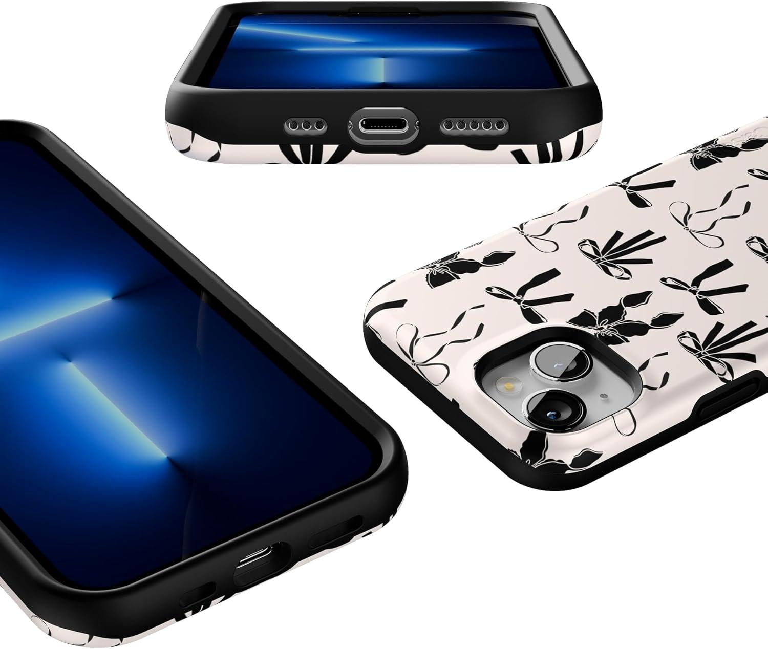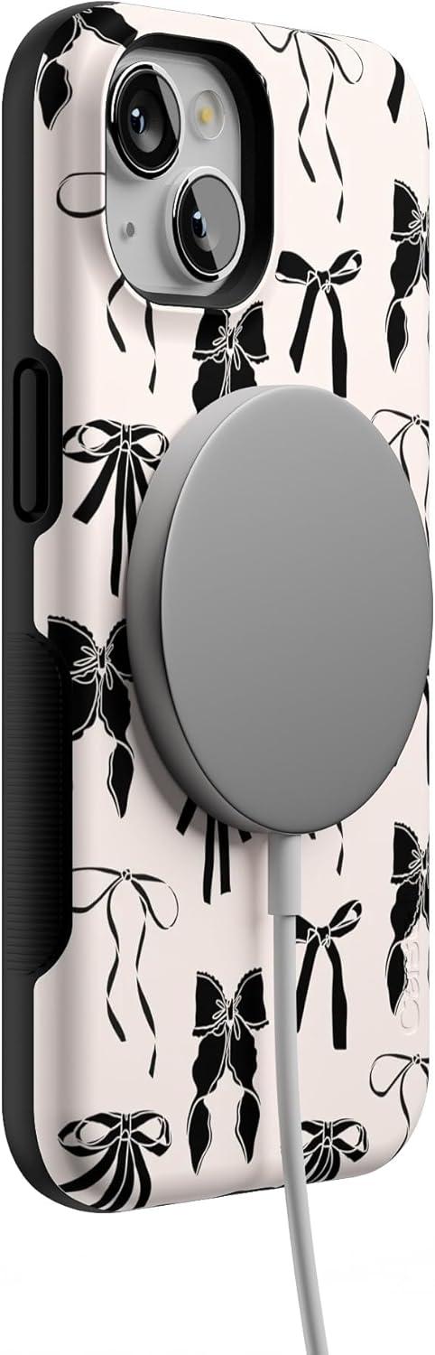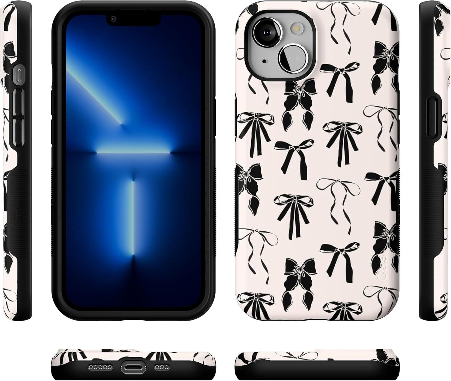 Casely iPhone 13 Case | Field of Flowers | Pastel Floral | Compatible with MagSafe | Bold Protective Design(Goth Girlie | Black Bows)