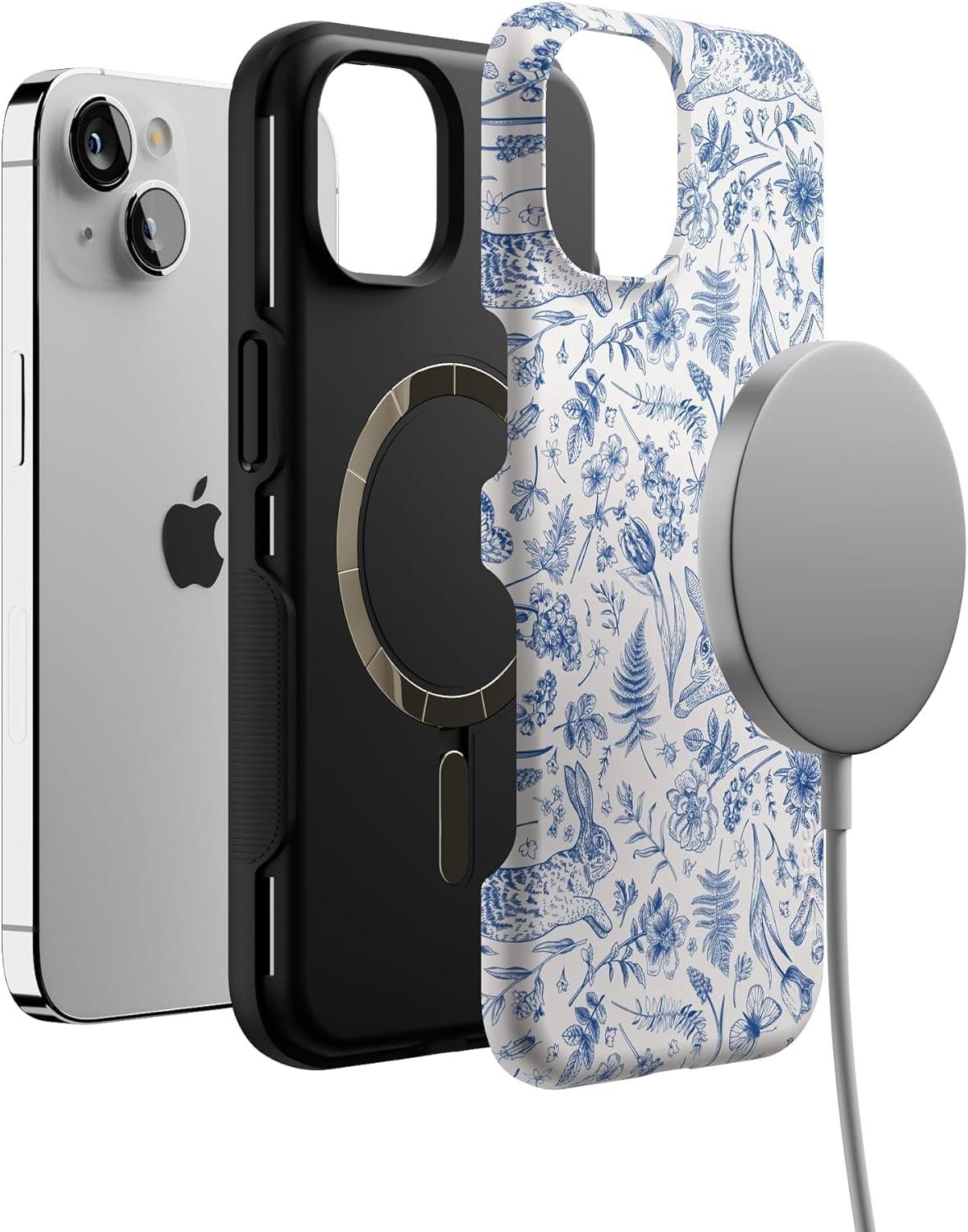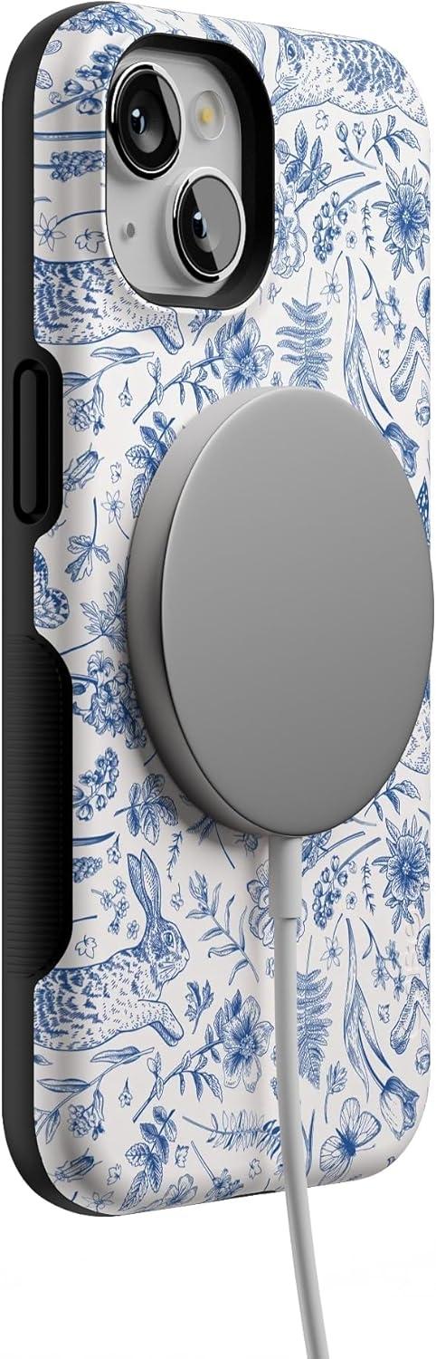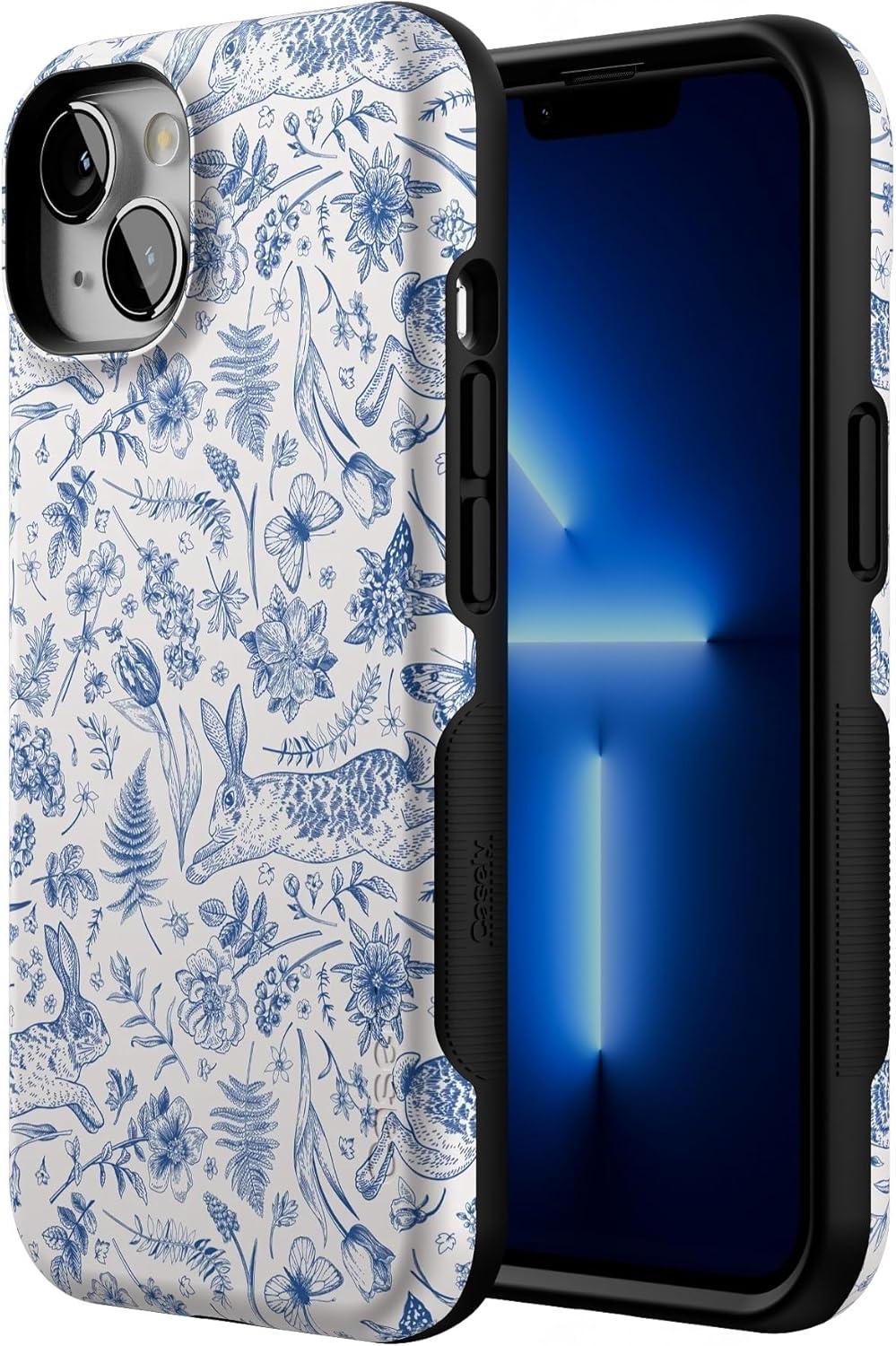 Casely iPhone 13 Case | Field of Flowers | Pastel Floral | Compatible with MagSafe | Bold Protective Design(Hop & Bloom | Bunny Toile)