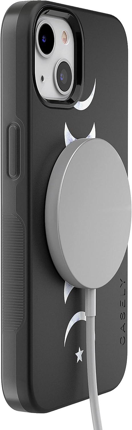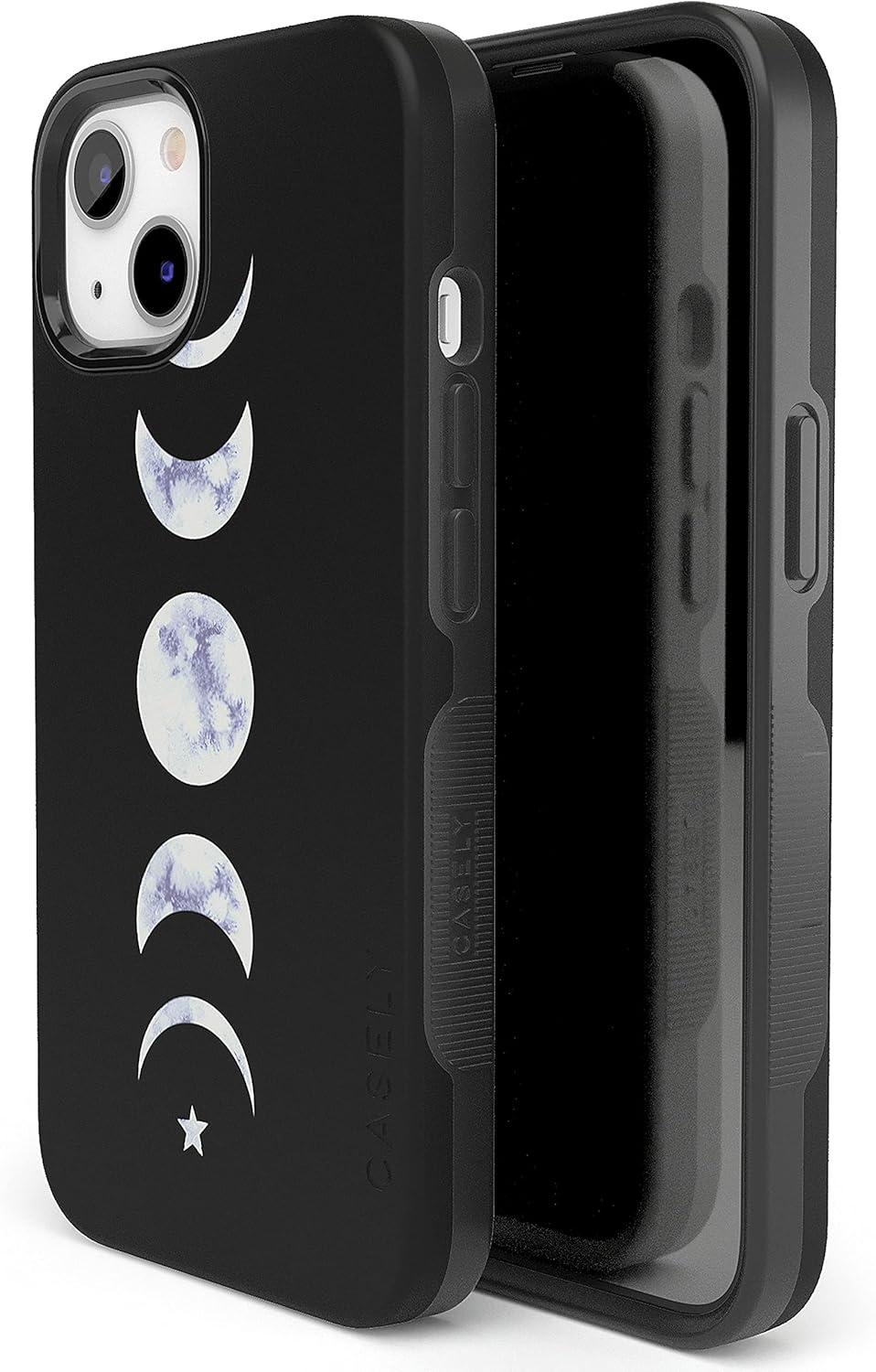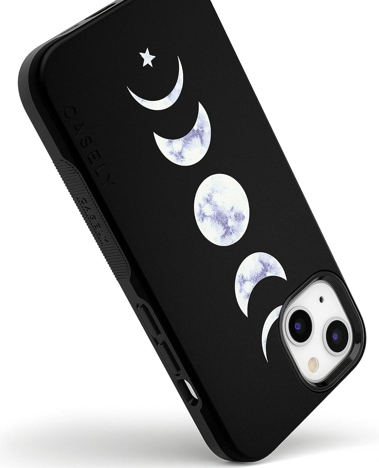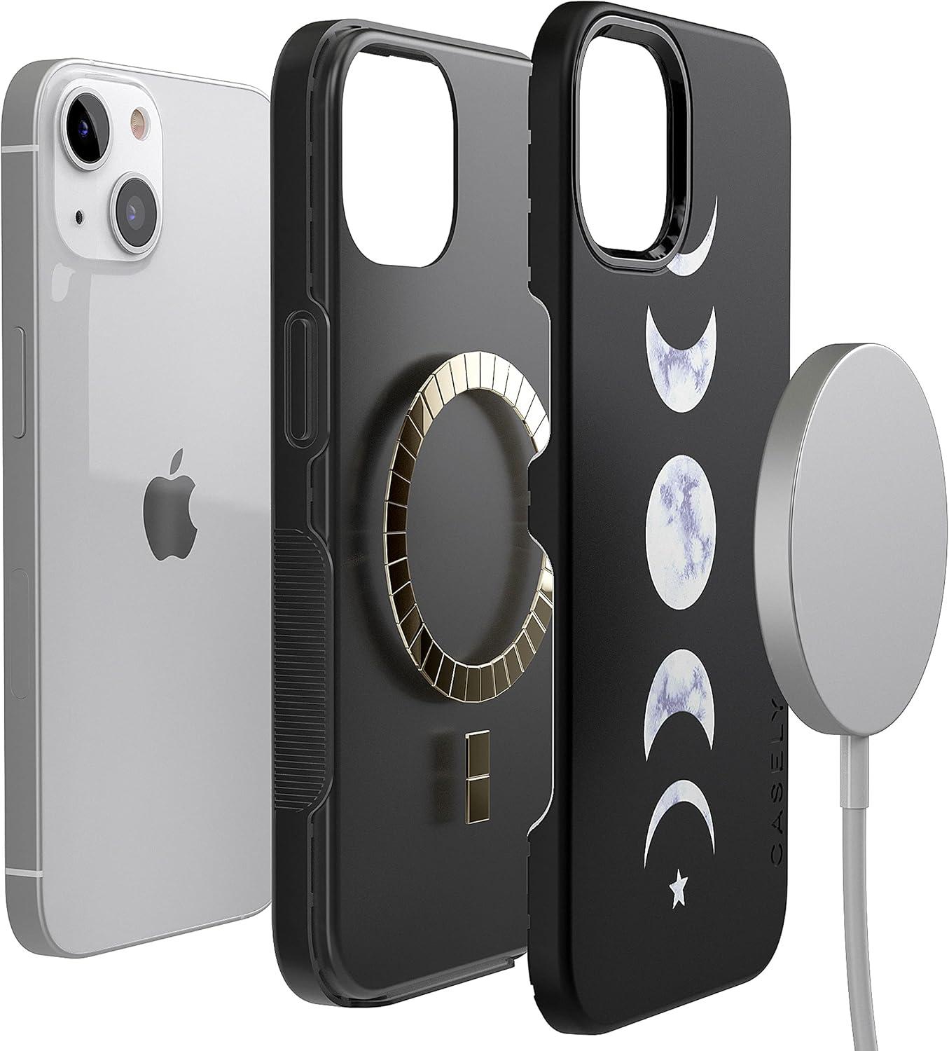 Casely iPhone 13 Case | Field of Flowers | Pastel Floral | Compatible with MagSafe | Bold Protective Design(It’s Just a Phase | Marble Moon)