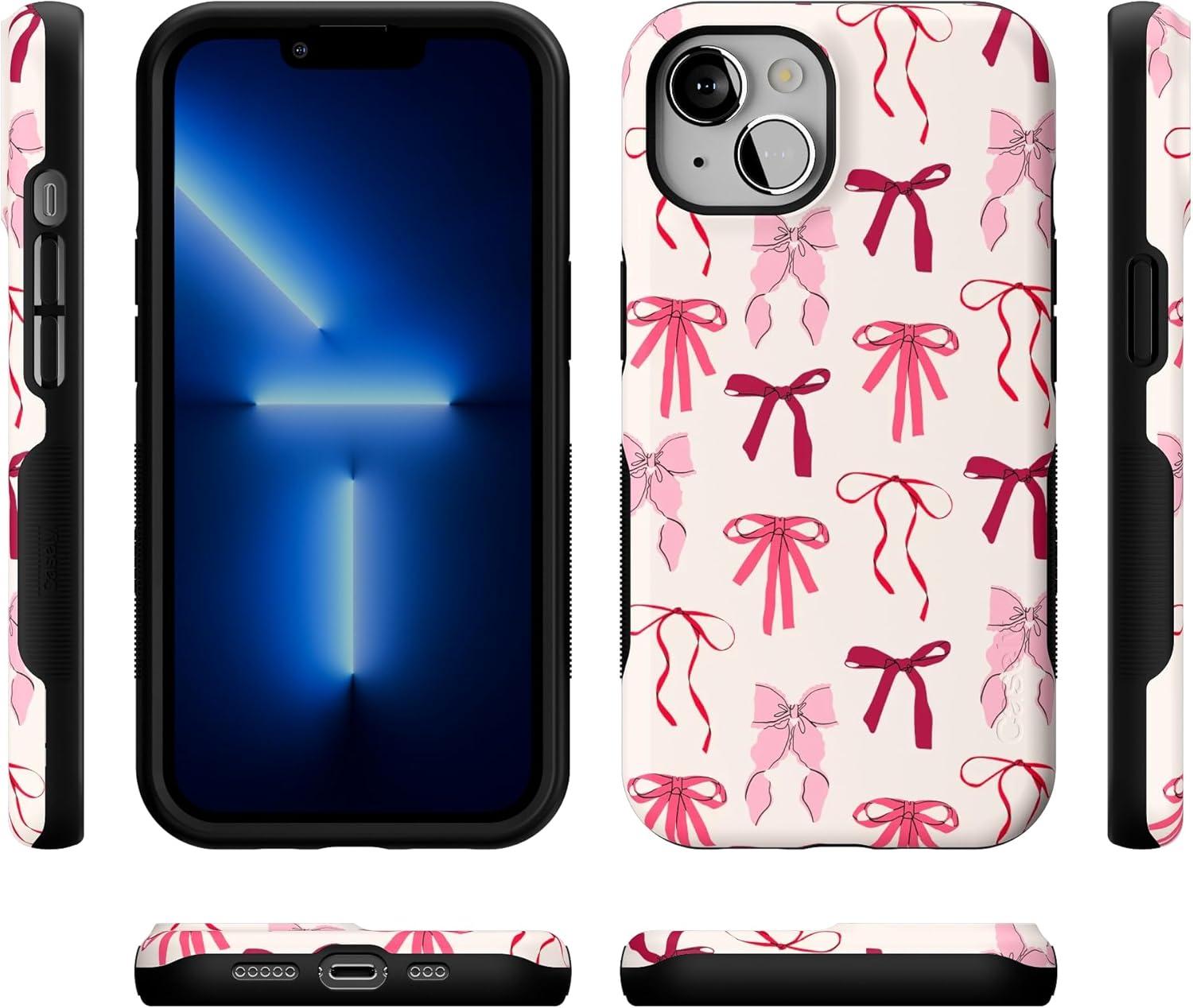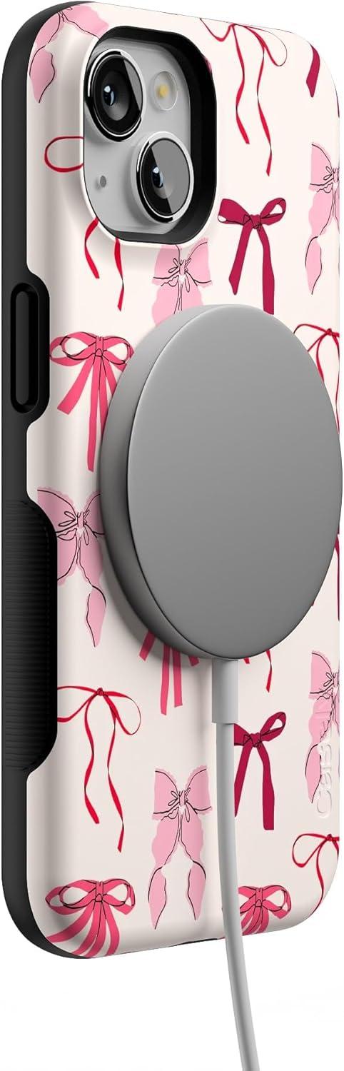 Casely iPhone 13 Case | Field of Flowers | Pastel Floral | Compatible with MagSafe | Bold Protective Design(Lover Girlie | Pink Bows)