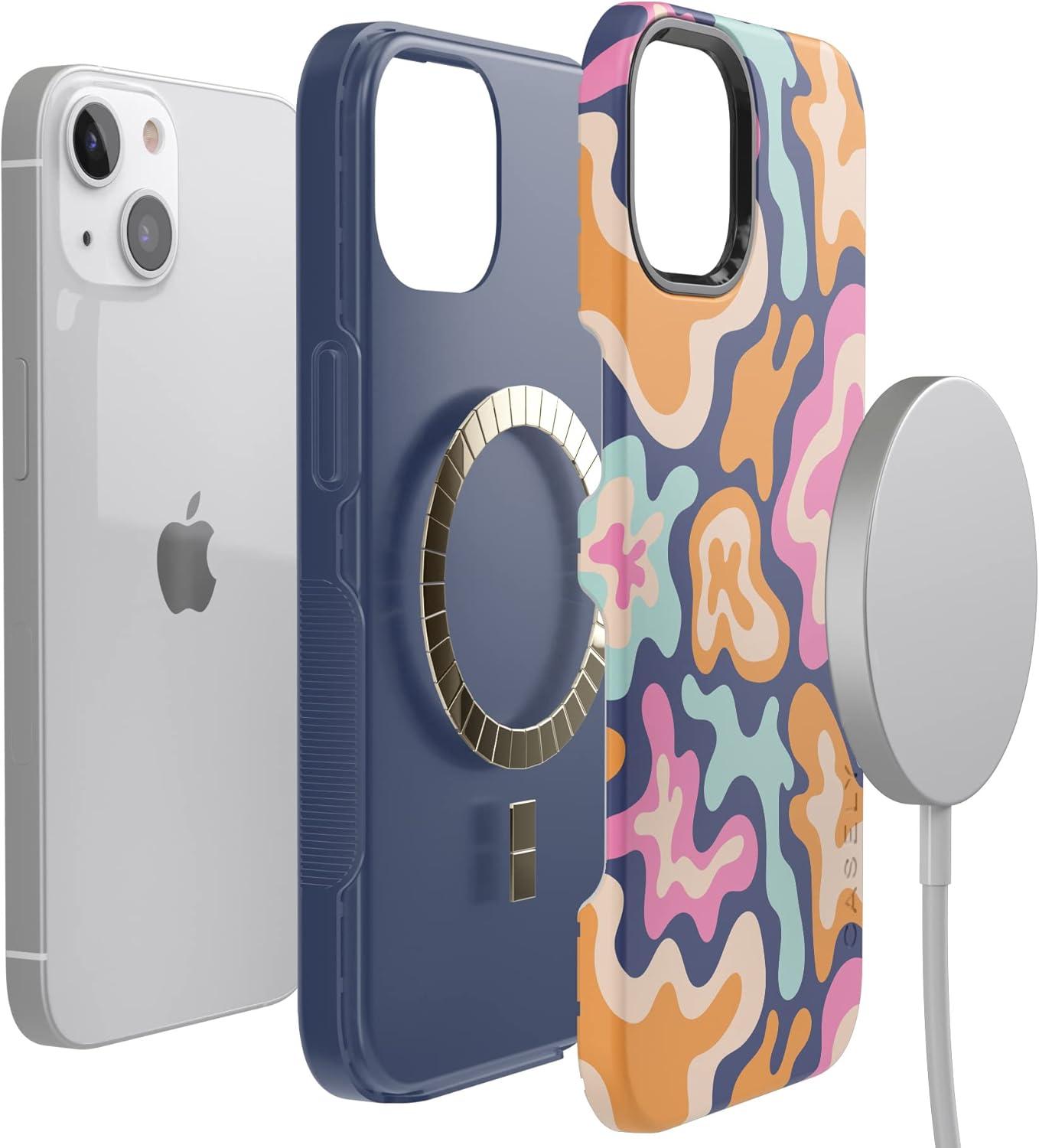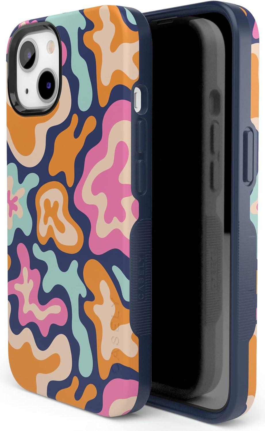 Casely iPhone 13 Case | Field of Flowers | Pastel Floral | Compatible with MagSafe | Bold Protective Design(Midnight Color Splash | Abstract Retro)
