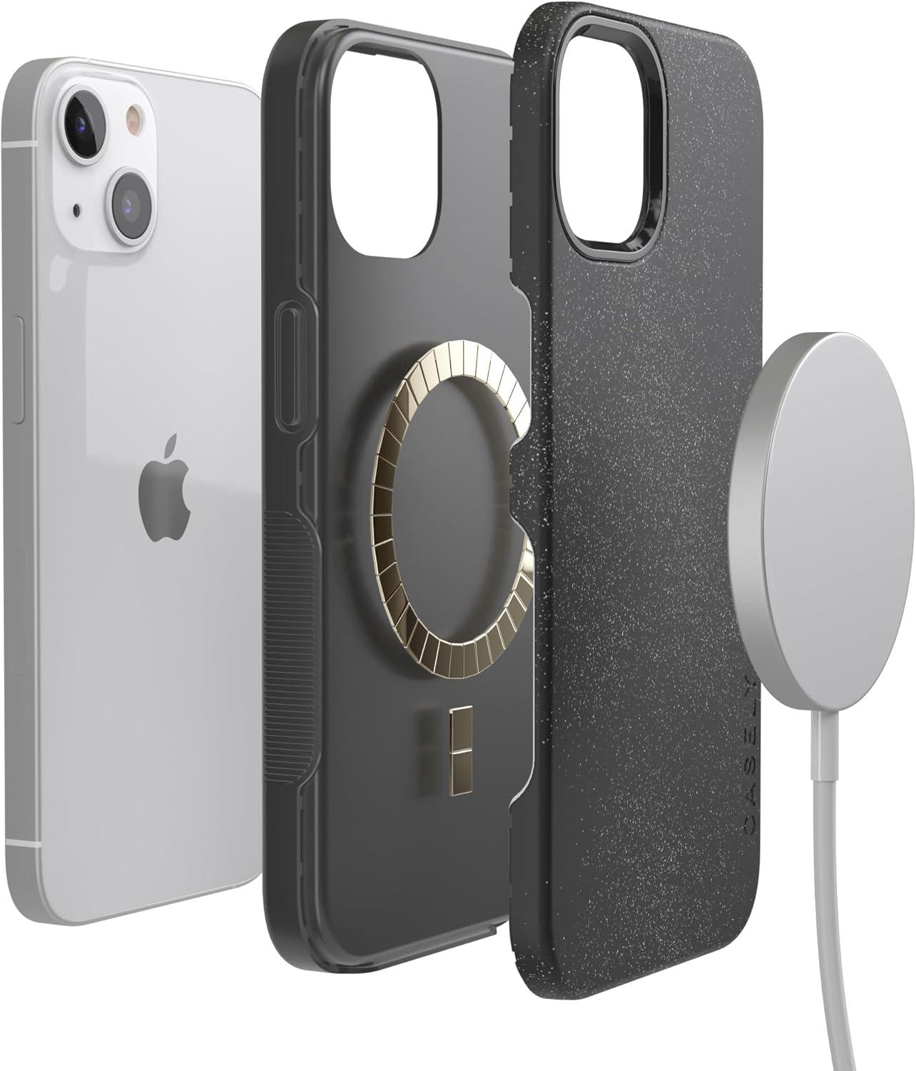 Casely iPhone 13 Case | Field of Flowers | Pastel Floral | Compatible with MagSafe | Bold Protective Design(Midnight Onyx | Black Shimmer)