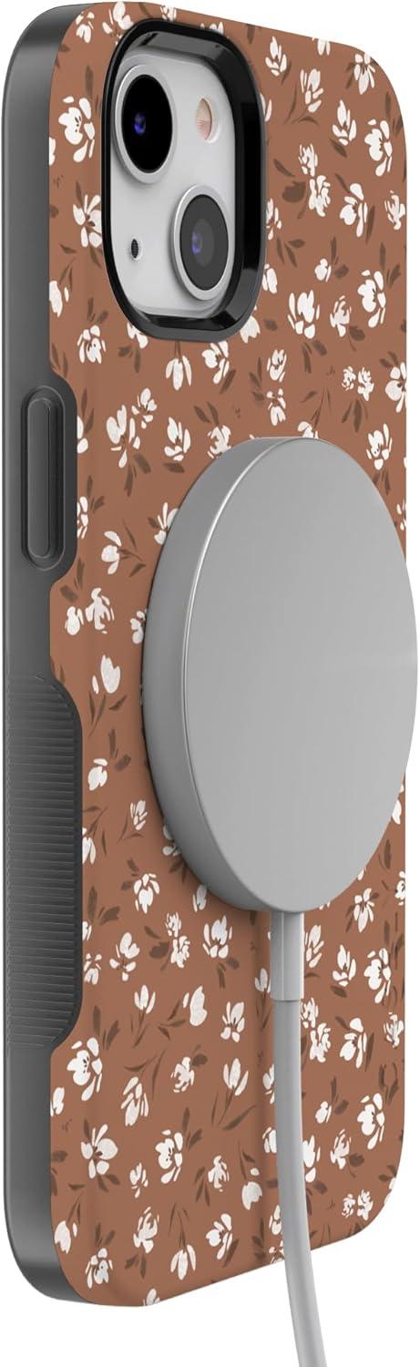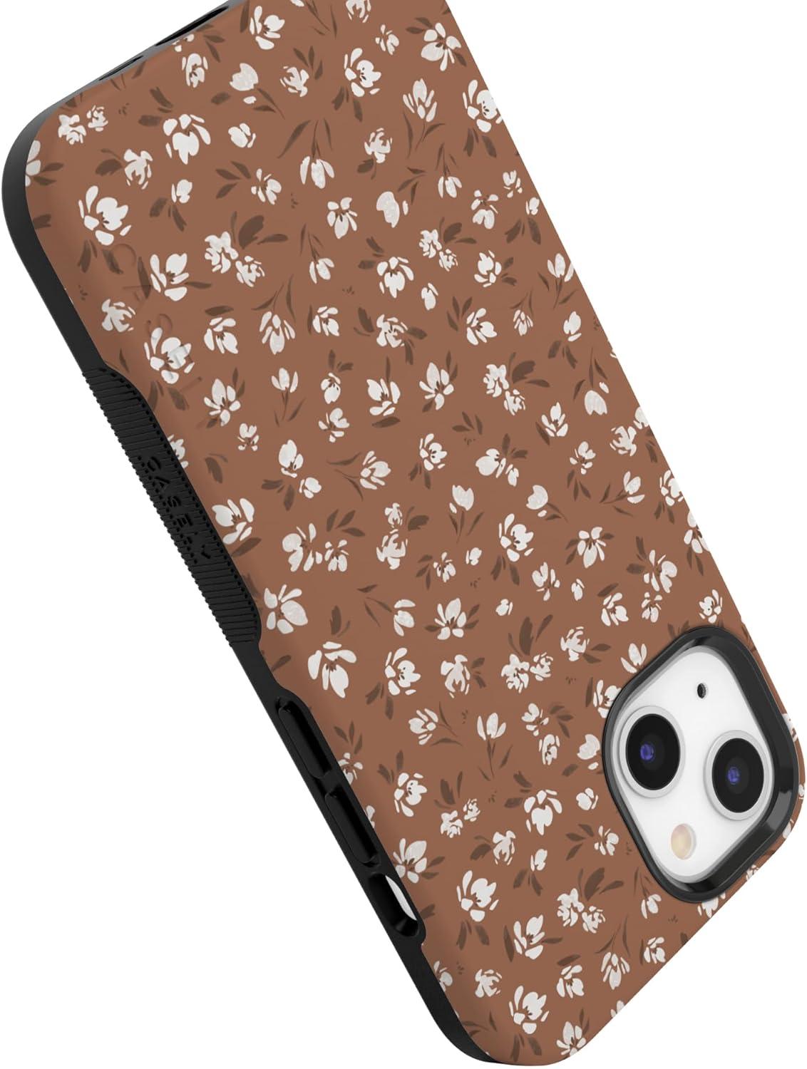 Casely iPhone 13 Case | Field of Flowers | Pastel Floral | Compatible with MagSafe | Bold Protective Design(Mocha Meadow | Tiny Flowers)