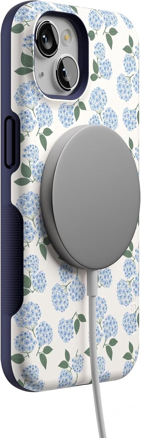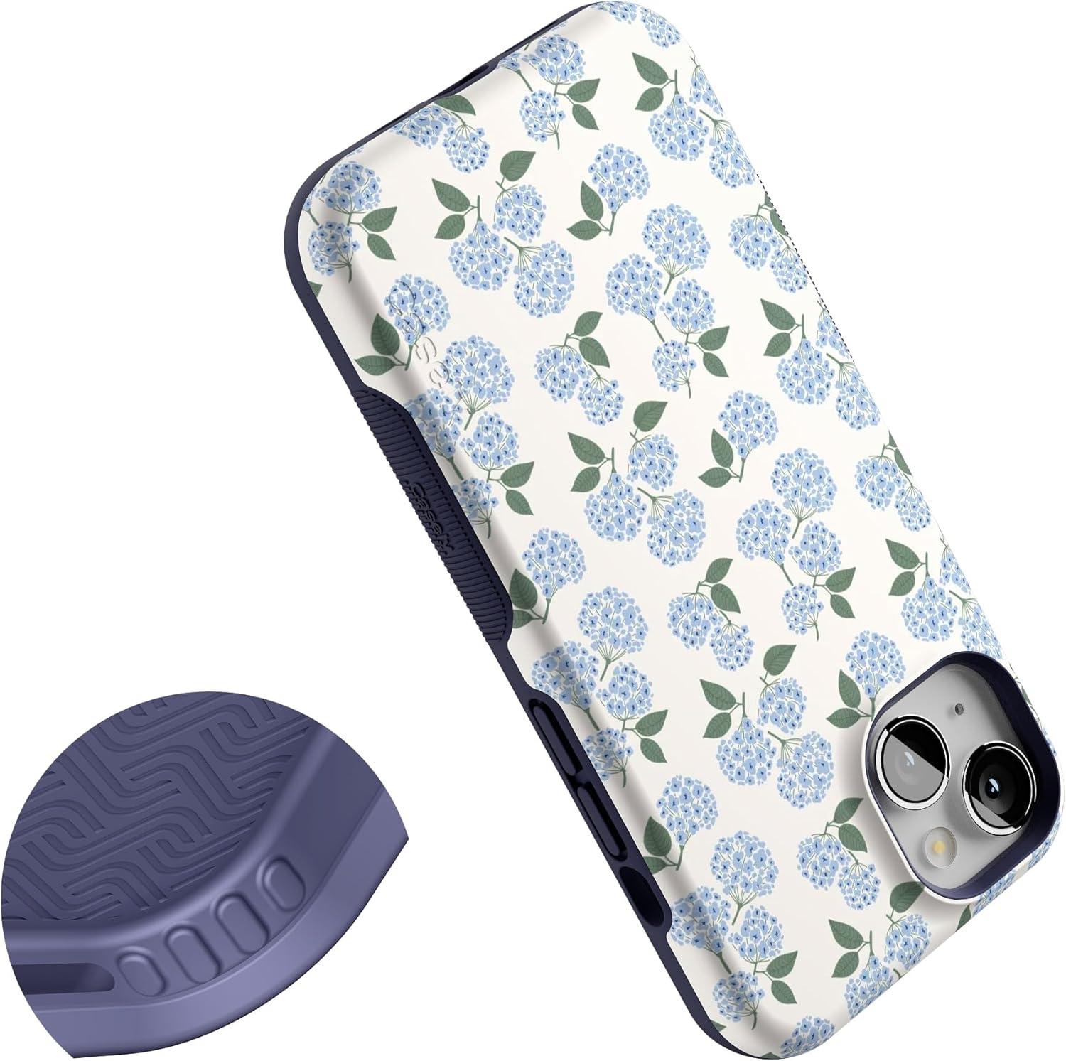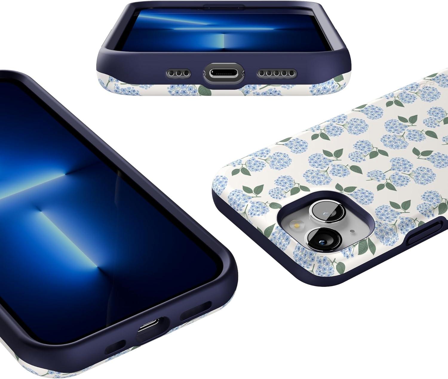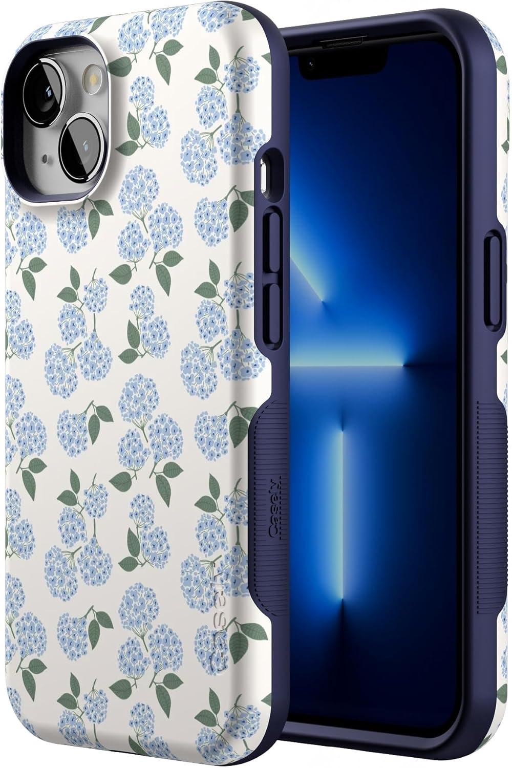 Casely iPhone 13 Case | Field of Flowers | Pastel Floral | Compatible with MagSafe | Bold Protective Design(Nantucket Cottage | Blue Hydrangea)