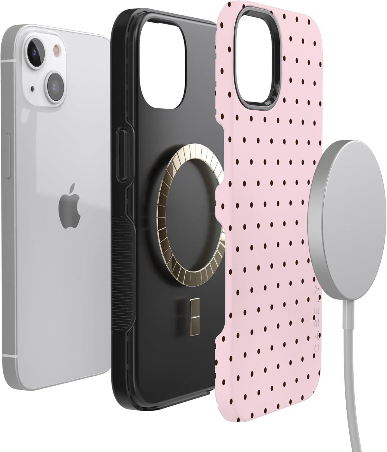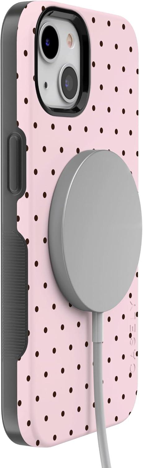 Casely iPhone 13 Case | Field of Flowers | Pastel Floral | Compatible with MagSafe | Bold Protective Design(On the Dot | Pink Polka Dot)