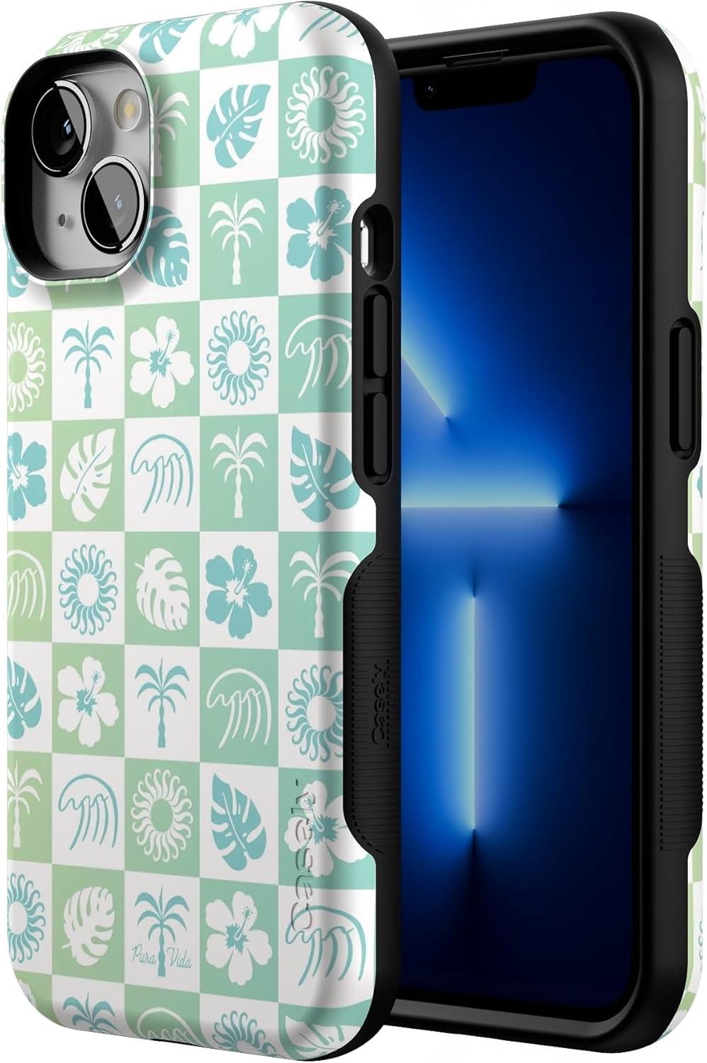 Casely iPhone 13 Case | Field of Flowers | Pastel Floral | Compatible with MagSafe | Bold Protective Design(Pura Vida | Coastal Checkers)