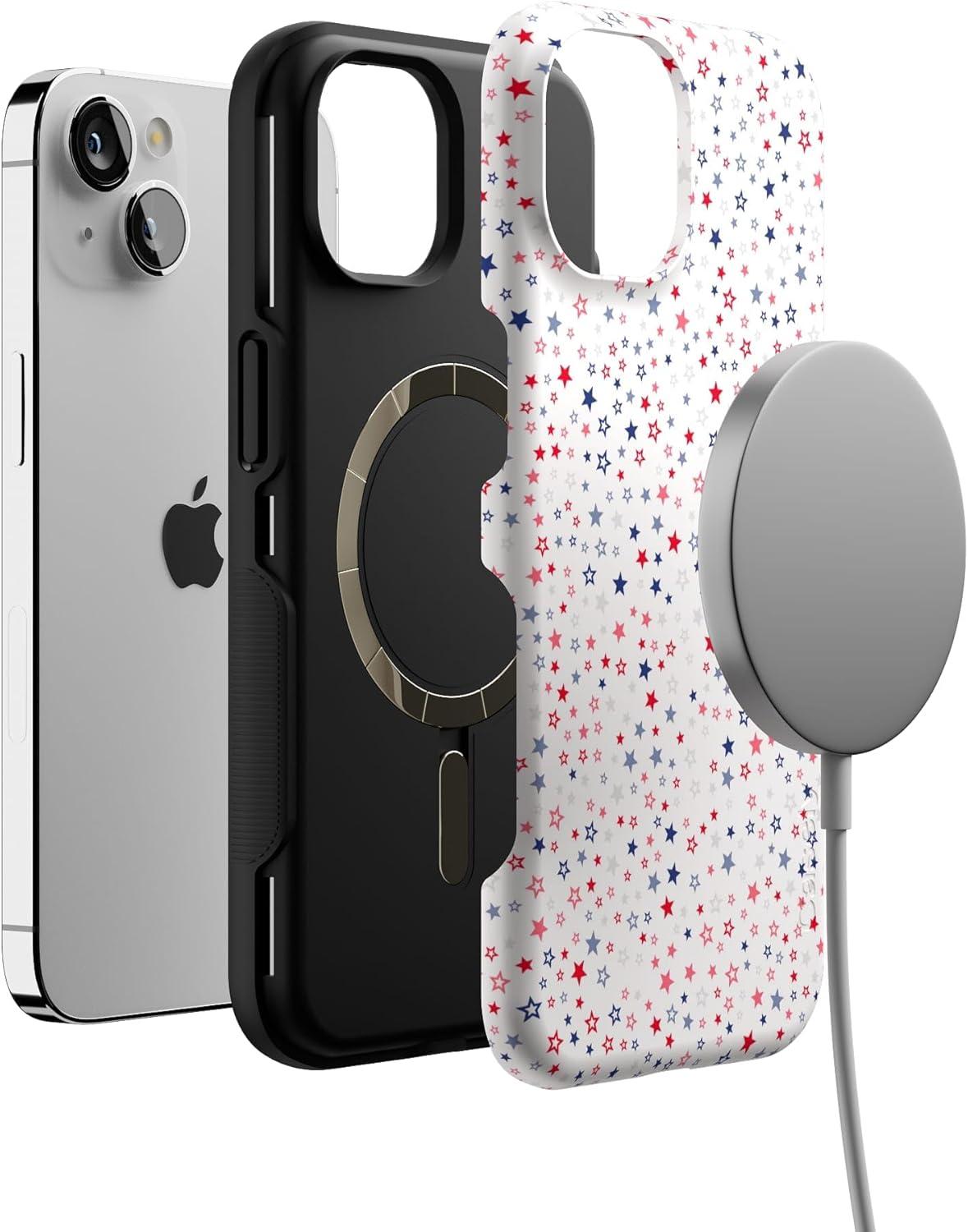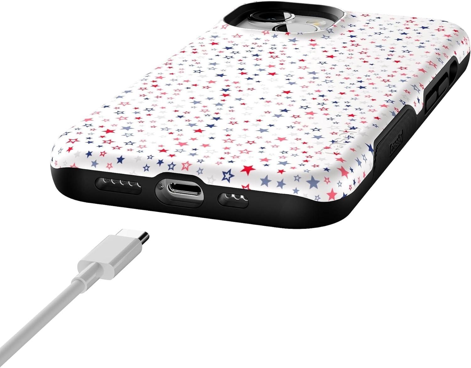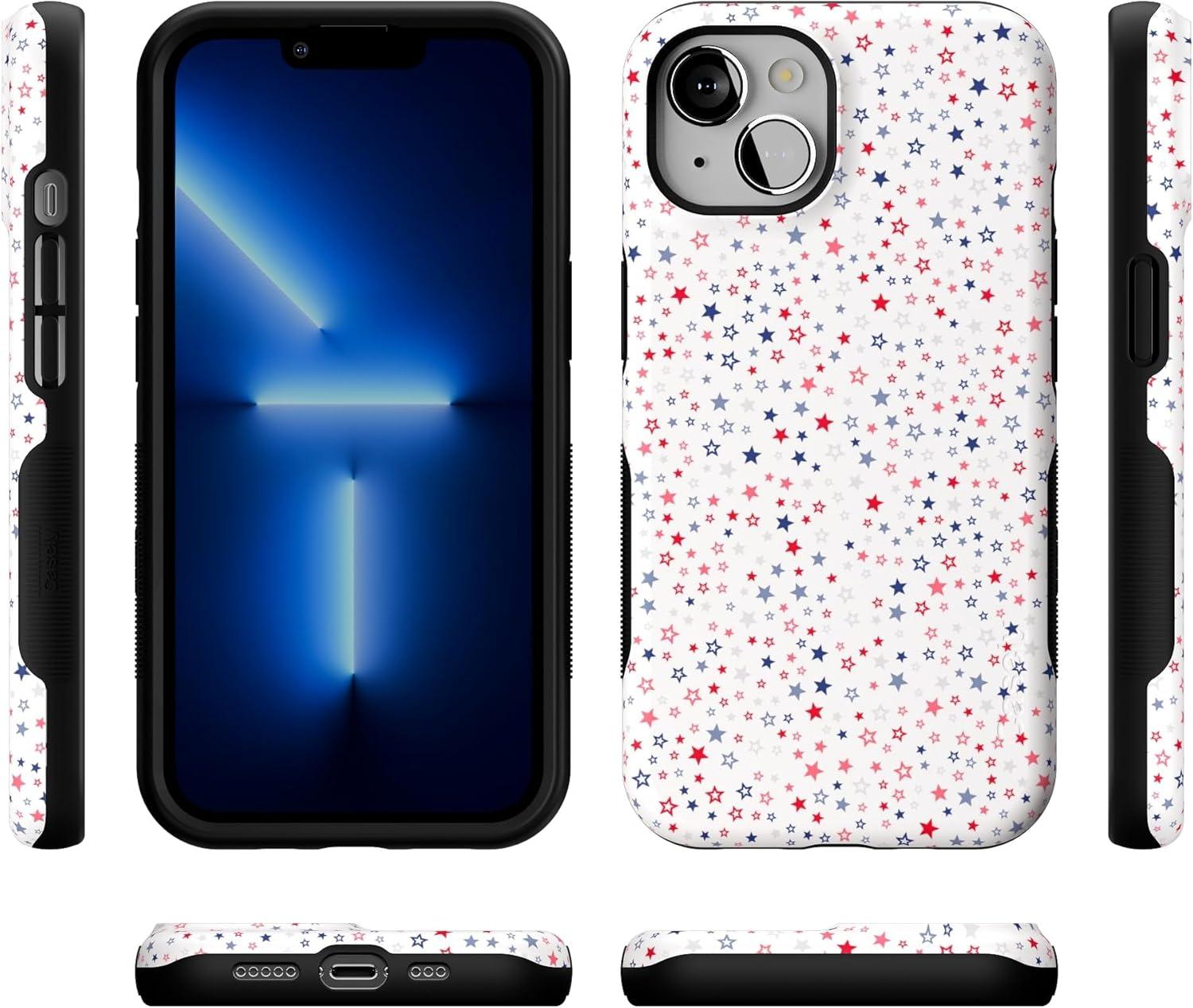 Casely iPhone 13 Case | Field of Flowers | Pastel Floral | Compatible with MagSafe | Bold Protective Design(Seeing Stars | Red White & Blue)