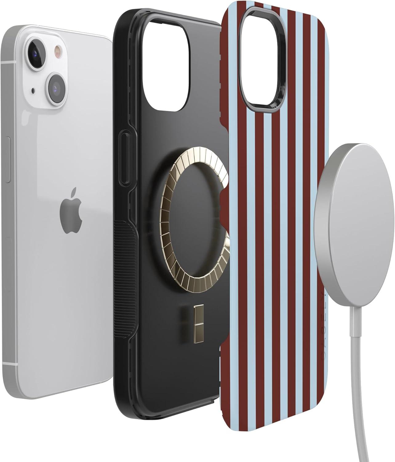 Casely iPhone 13 Case | Field of Flowers | Pastel Floral | Compatible with MagSafe | Bold Protective Design(Sunday in Brooklyn | Chocolate Stripes)