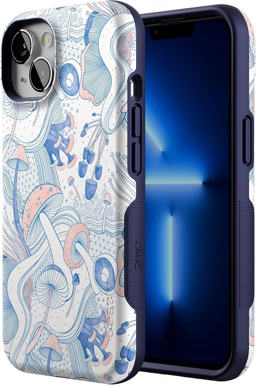 Casely iPhone 13 Case | Field of Flowers | Pastel Floral | Compatible with MagSafe | Bold Protective Design(The Fun Guy | Enchanted Forest Mushroom Floral)