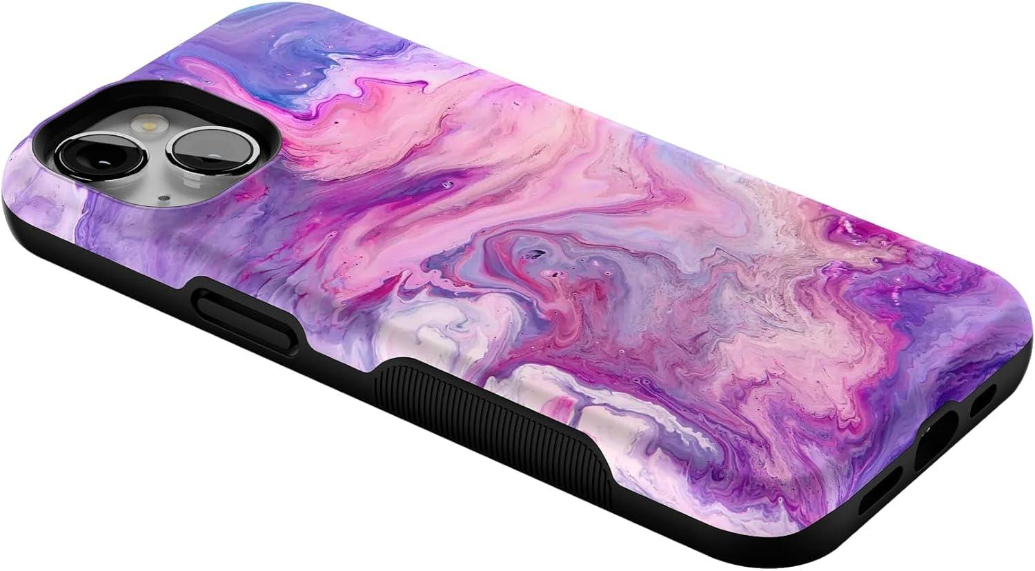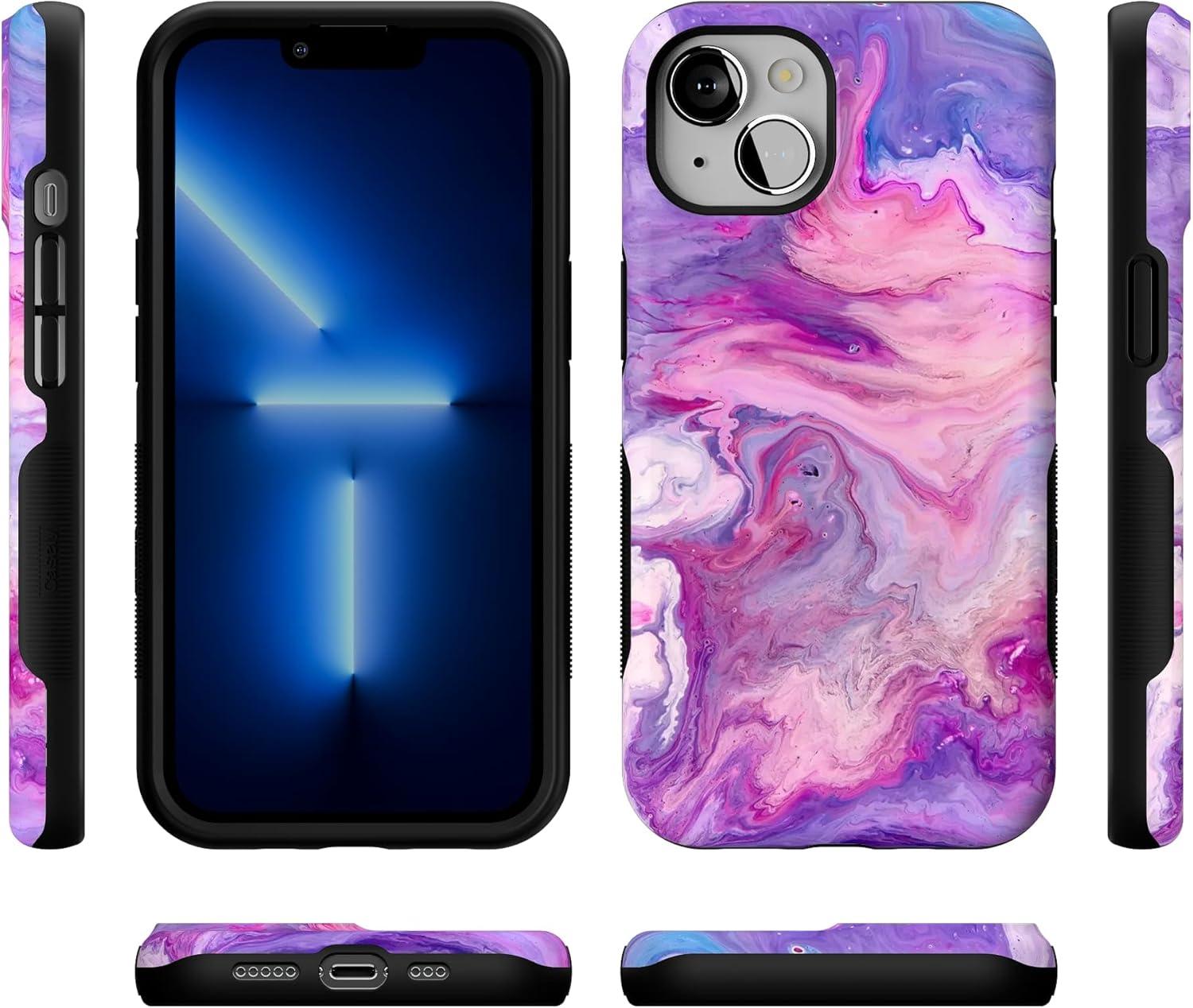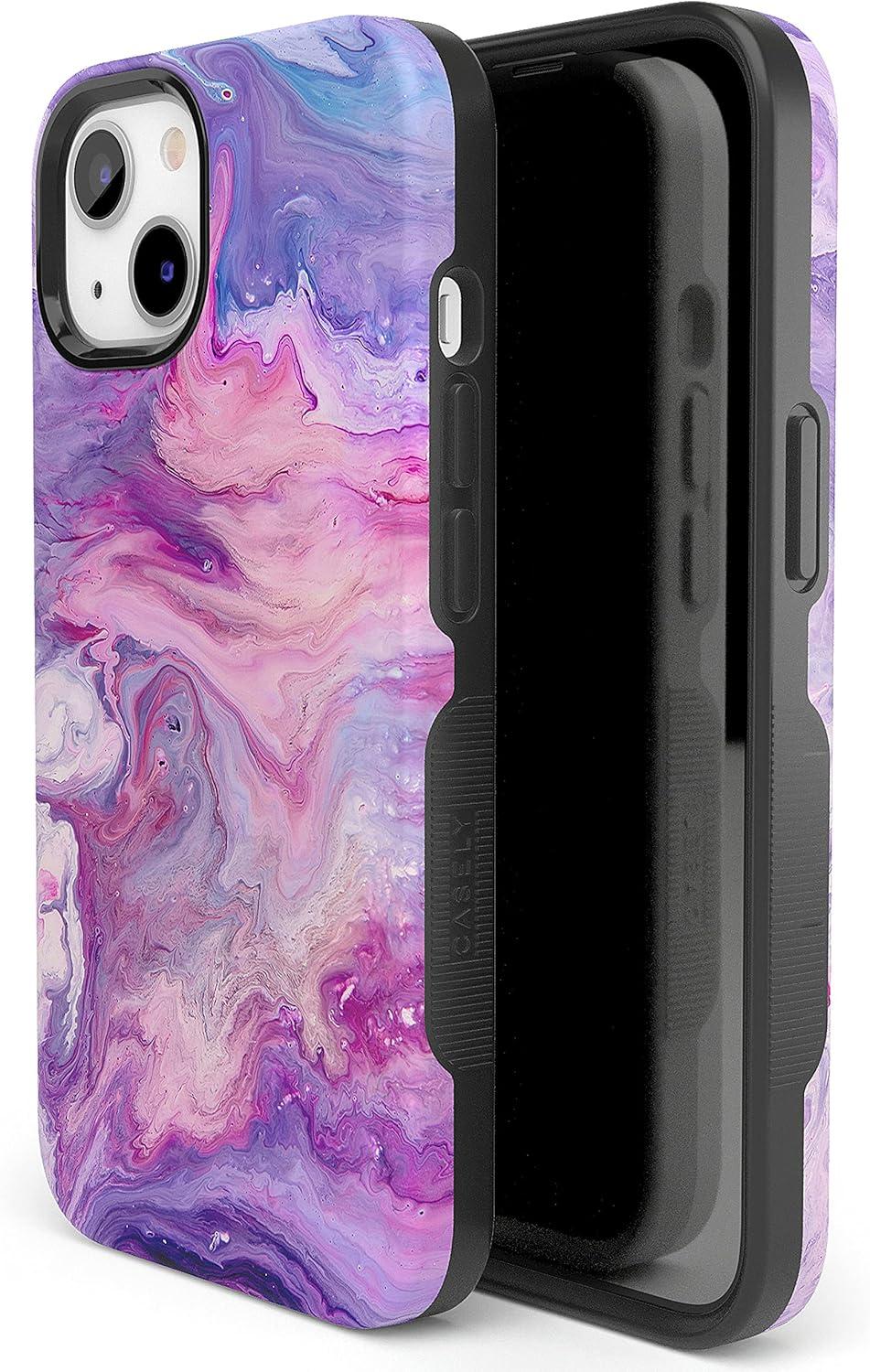 Casely iPhone 13 Case | Field of Flowers | Pastel Floral | Compatible with MagSafe | Bold Protective Design(Tie Dying Over You Purple Marble)
