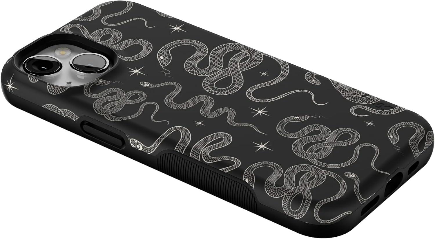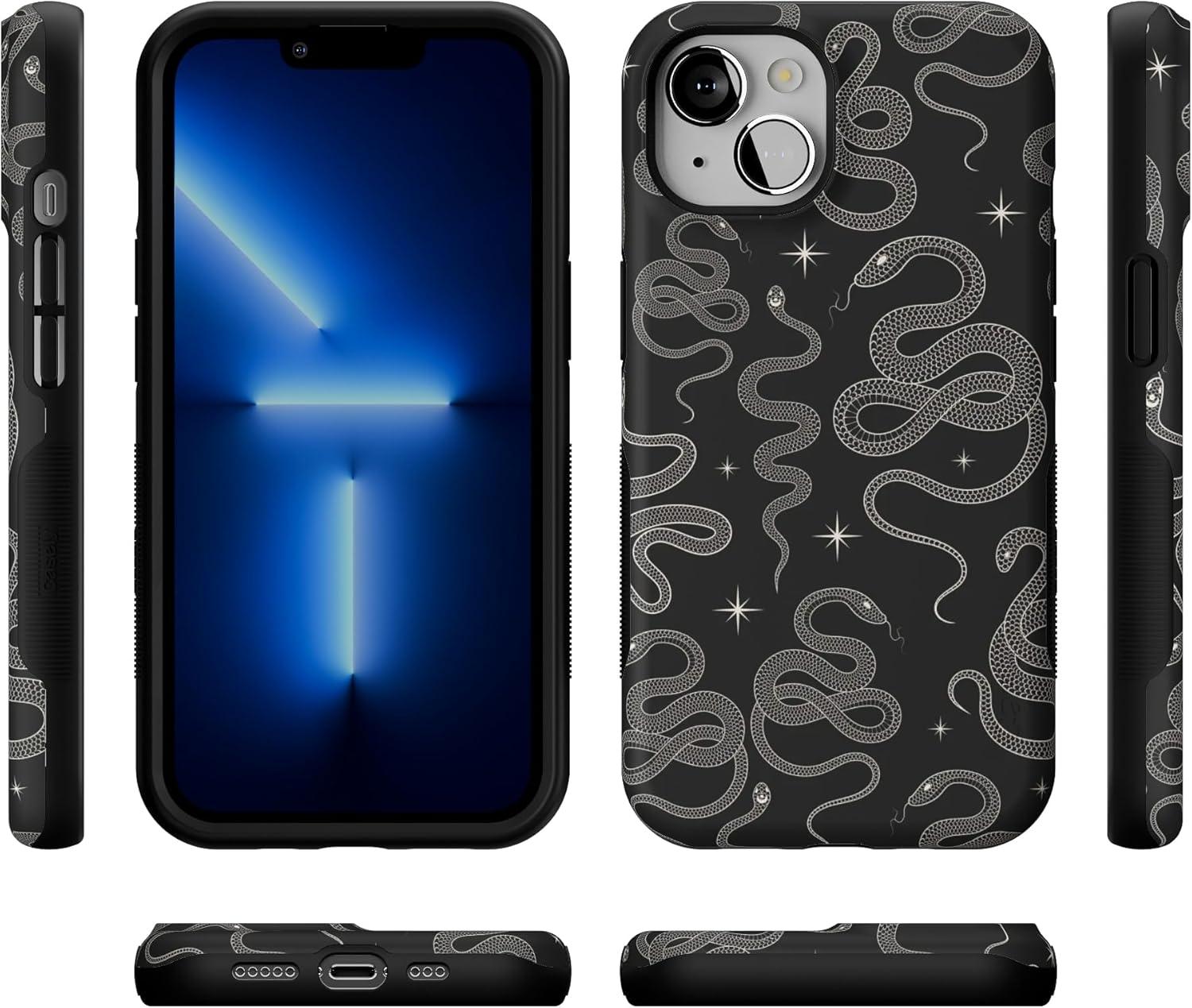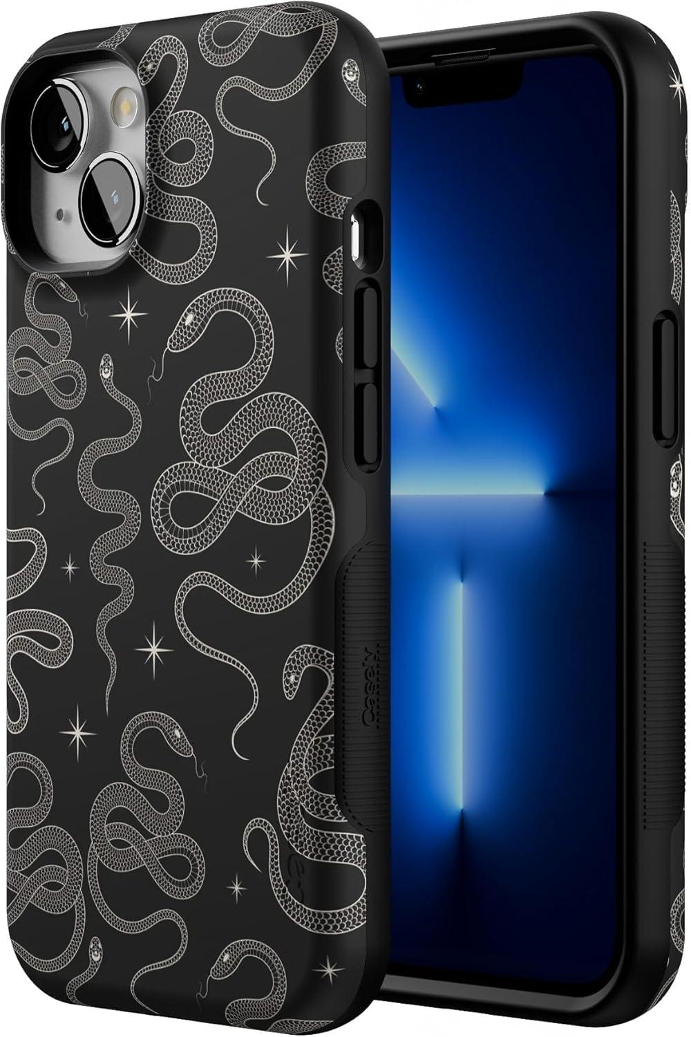Casely iPhone 13 Case | Field of Flowers | Pastel Floral | Compatible with MagSafe | Bold Protective Design(We’re Ready For It | Black Serpent)