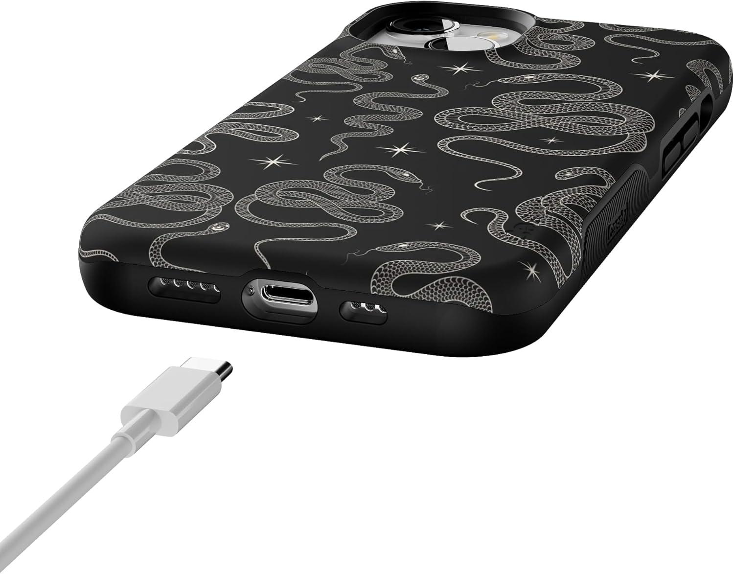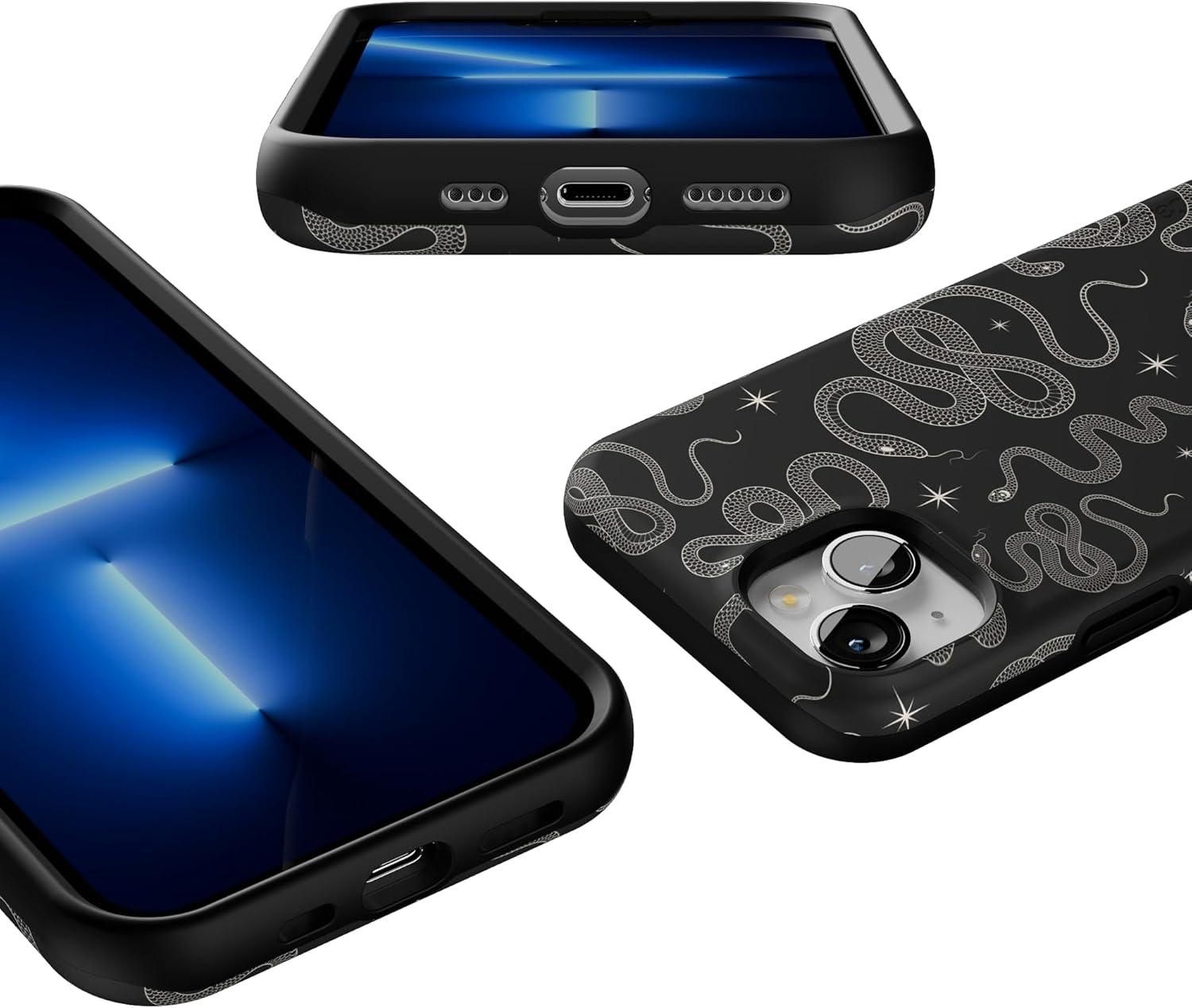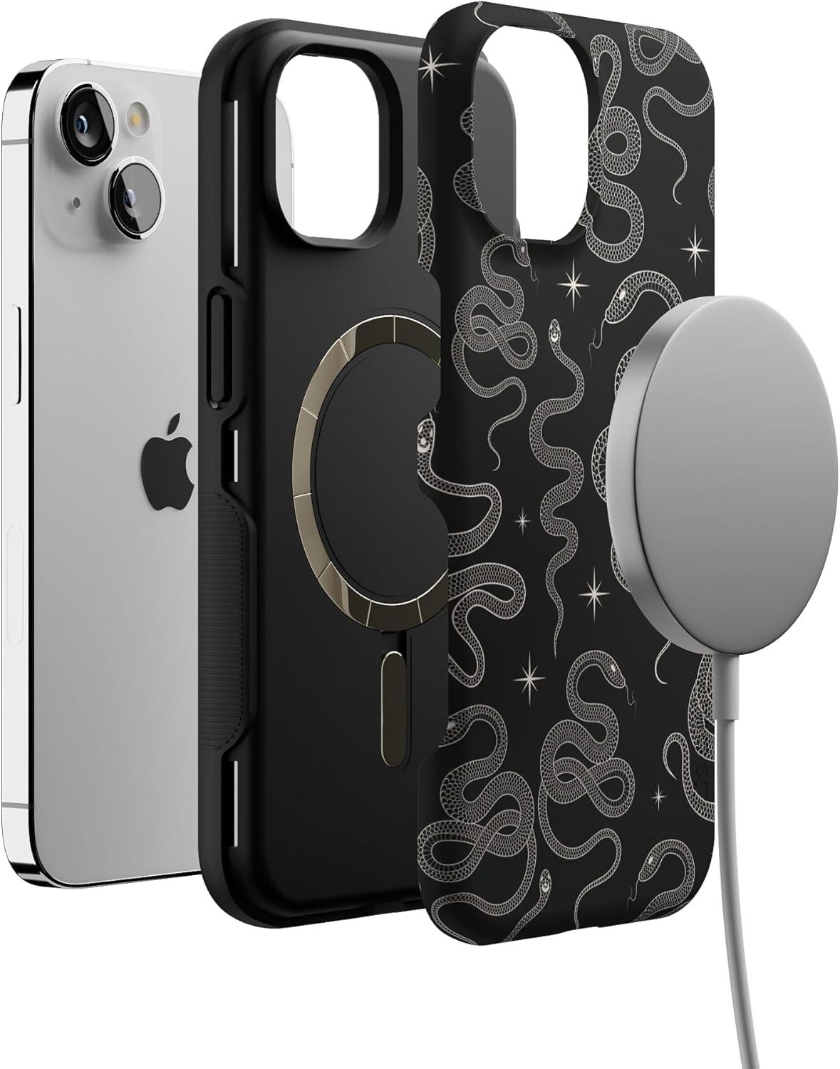 Casely iPhone 13 Case | Field of Flowers | Pastel Floral | Compatible with MagSafe | Bold Protective Design(We’re Ready For It | Black Serpent)