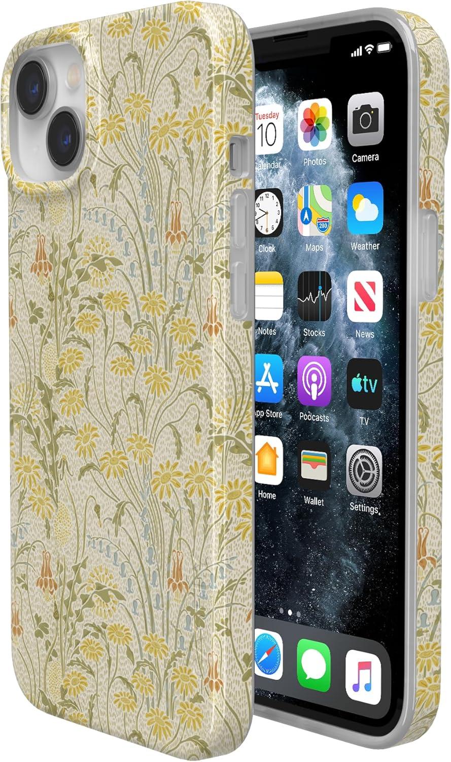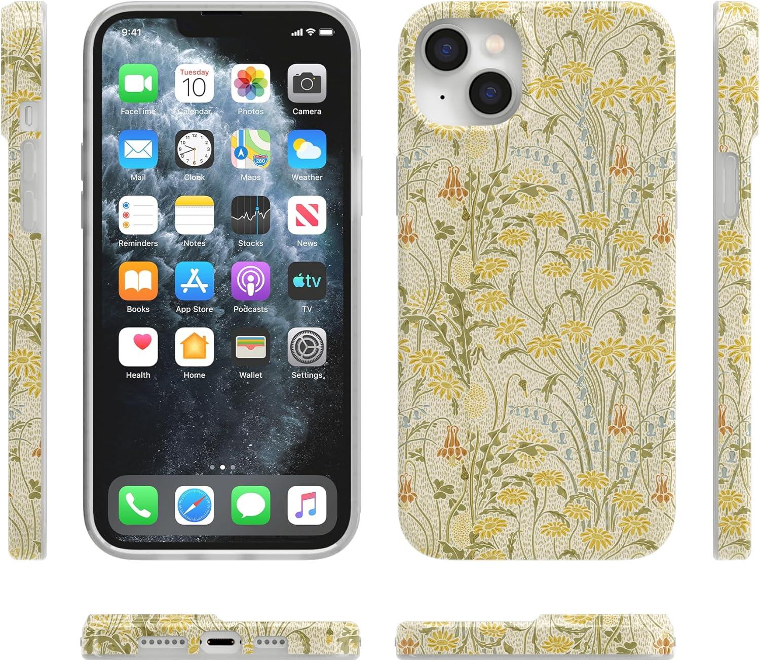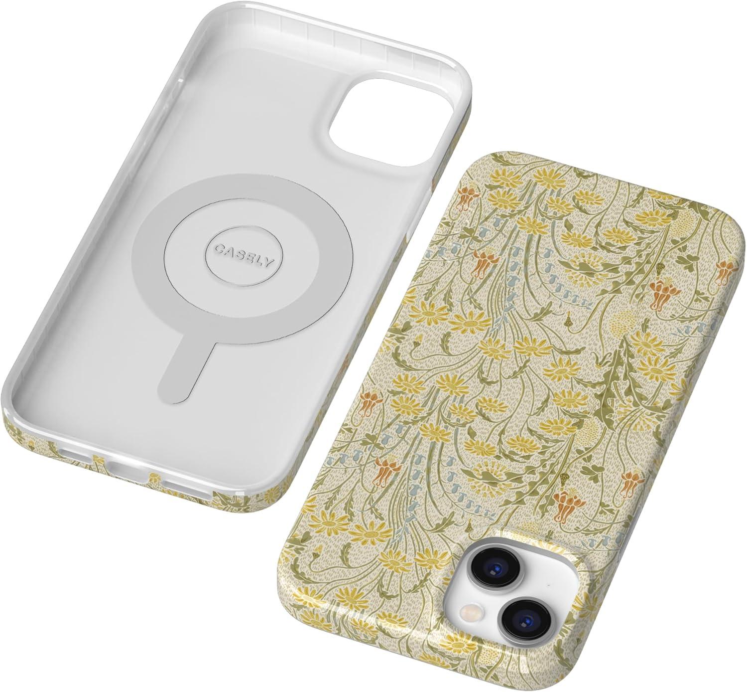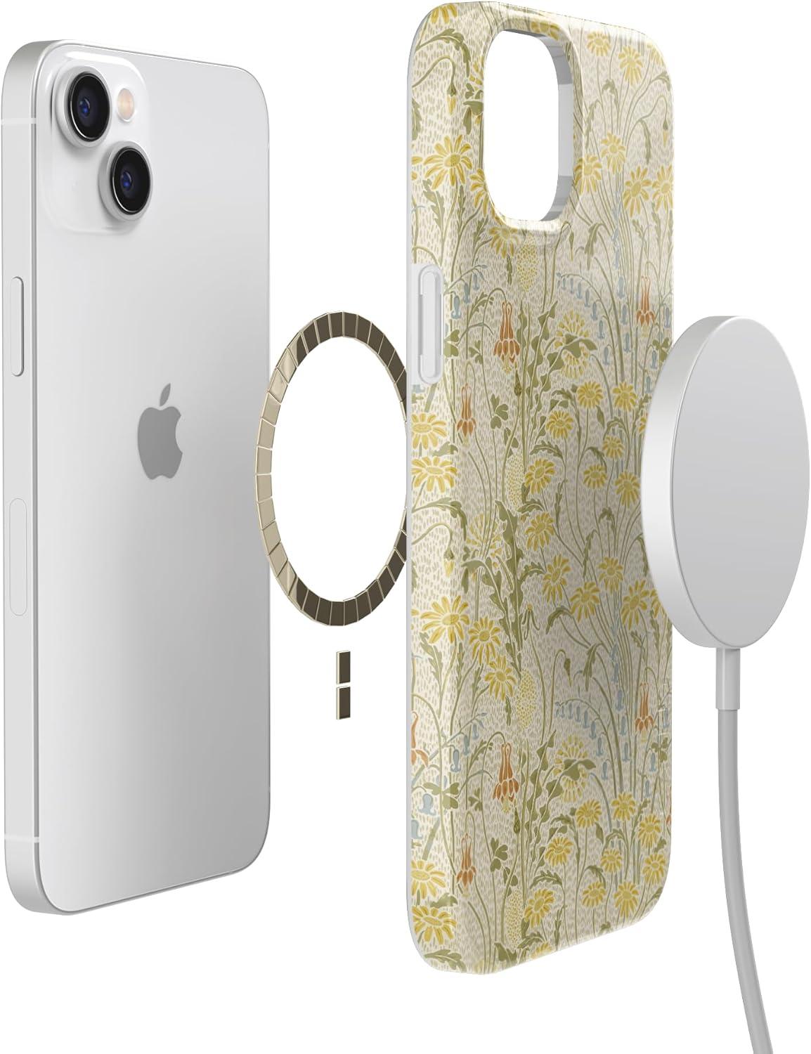Casely iPhone 13 Case | Fit Check | Neutral Checkerboard | Compatible with MagSafe | Classic Ultra Slim Design(Boho Blooms | Golden Floral)