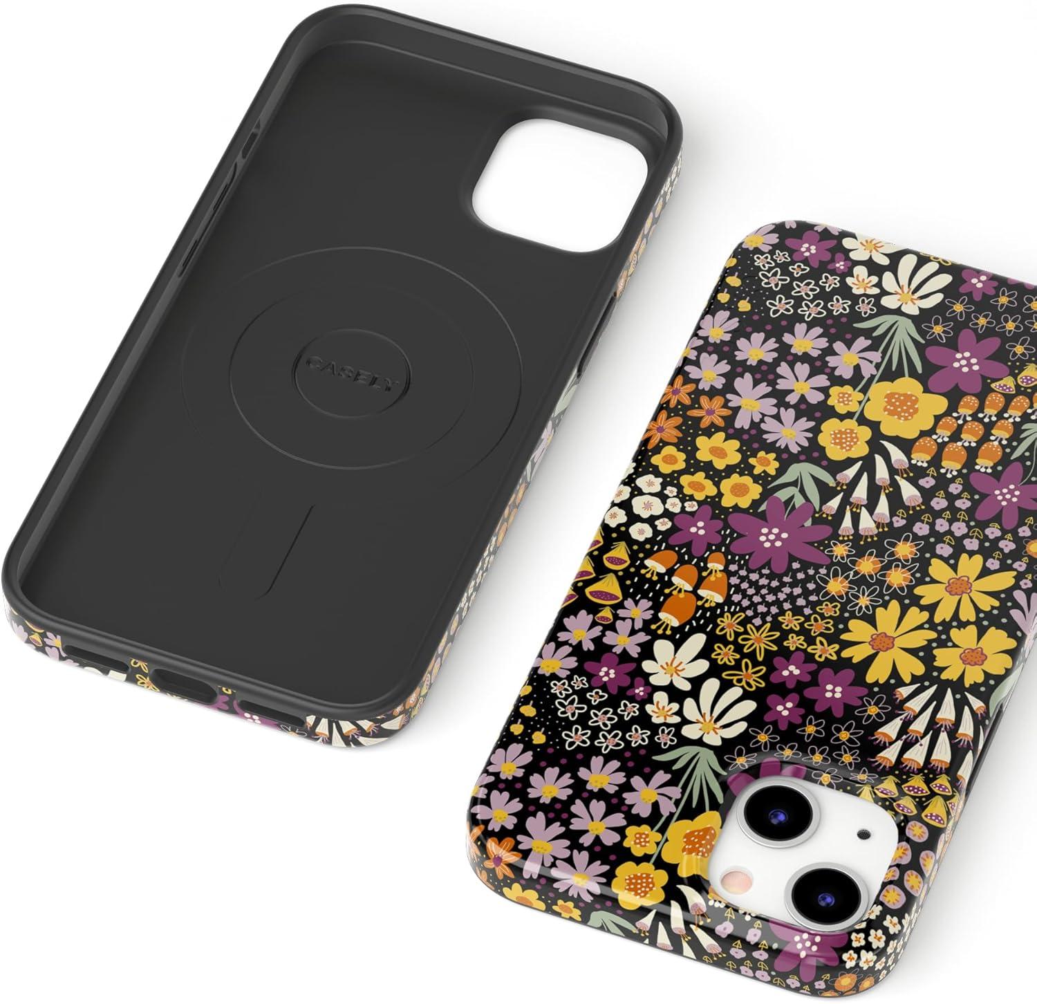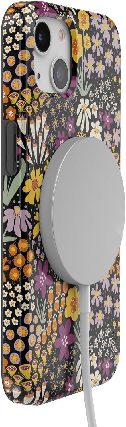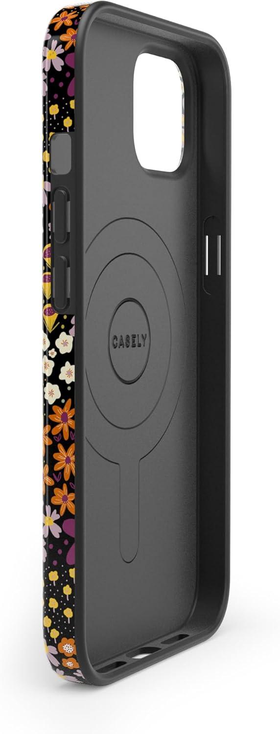 Casely iPhone 13 Case | Fit Check | Neutral Checkerboard | Compatible with MagSafe | Classic Ultra Slim Design(Falling for You | Plum Floral)