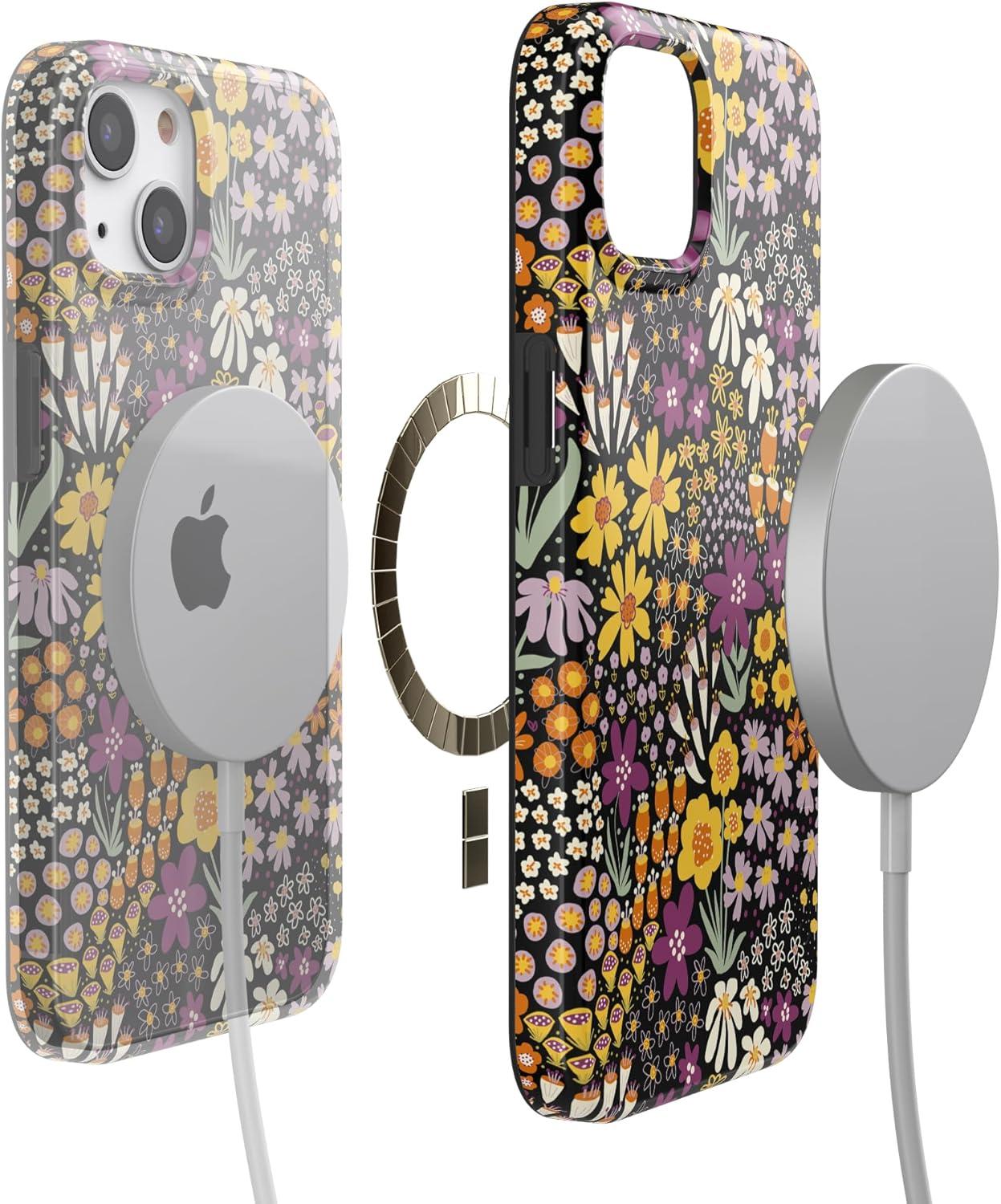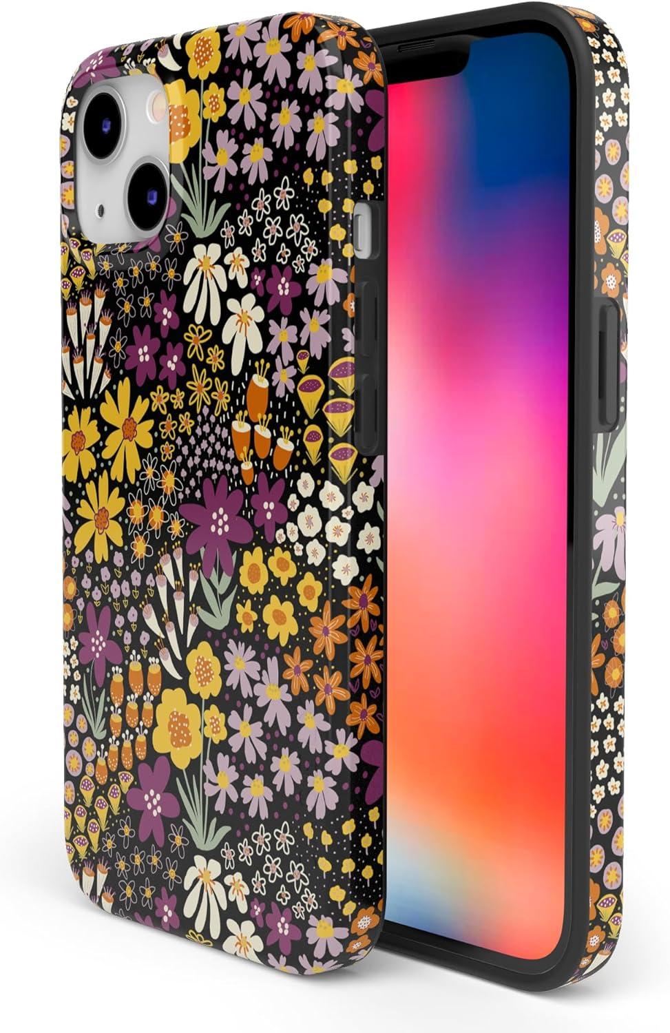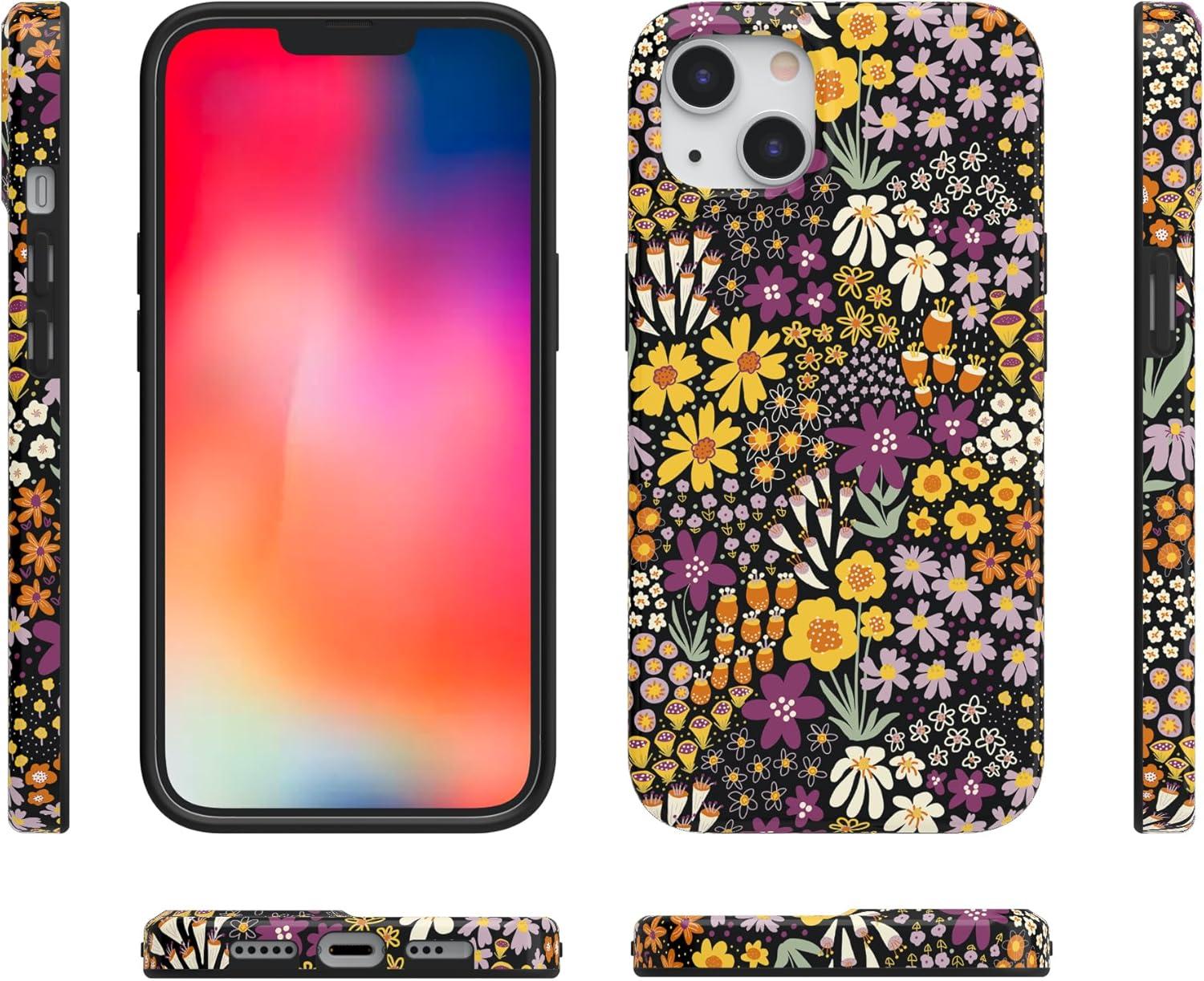 Casely iPhone 13 Case | Fit Check | Neutral Checkerboard | Compatible with MagSafe | Classic Ultra Slim Design(Falling for You | Plum Floral)