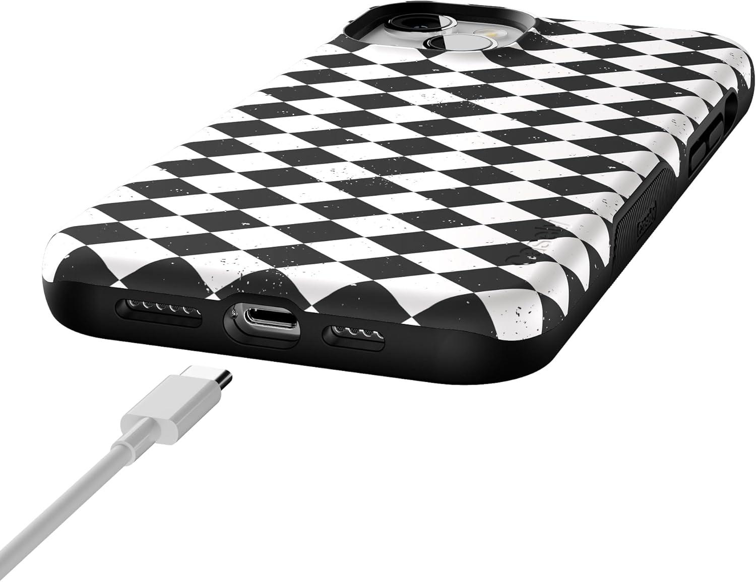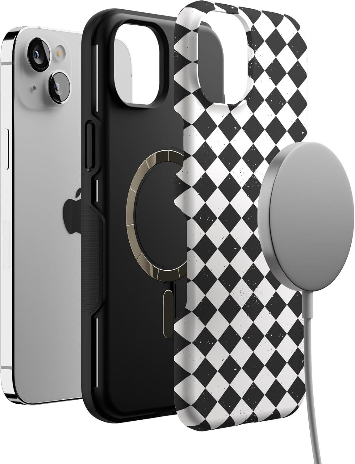 Casely iPhone 13 Case | Harlequin Salem Diamond | Black and White | Bold Protective Design | MagSafe Compatible Design