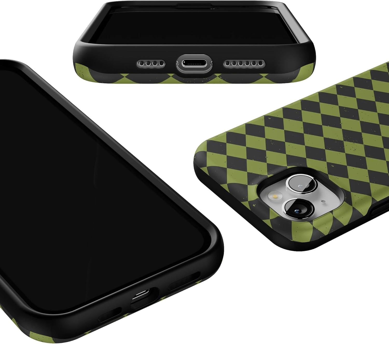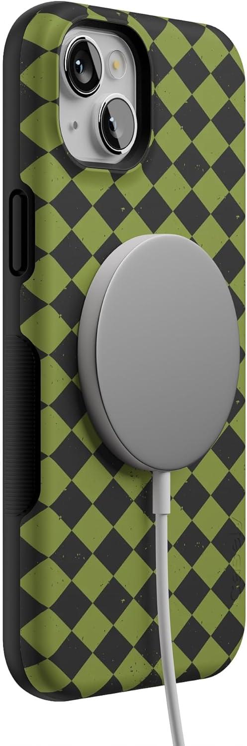 Casely iPhone 13 Case | Harlequin Wicked Diamond | Black and Green | Bold Protective Design | MagSafe Compatible Design
