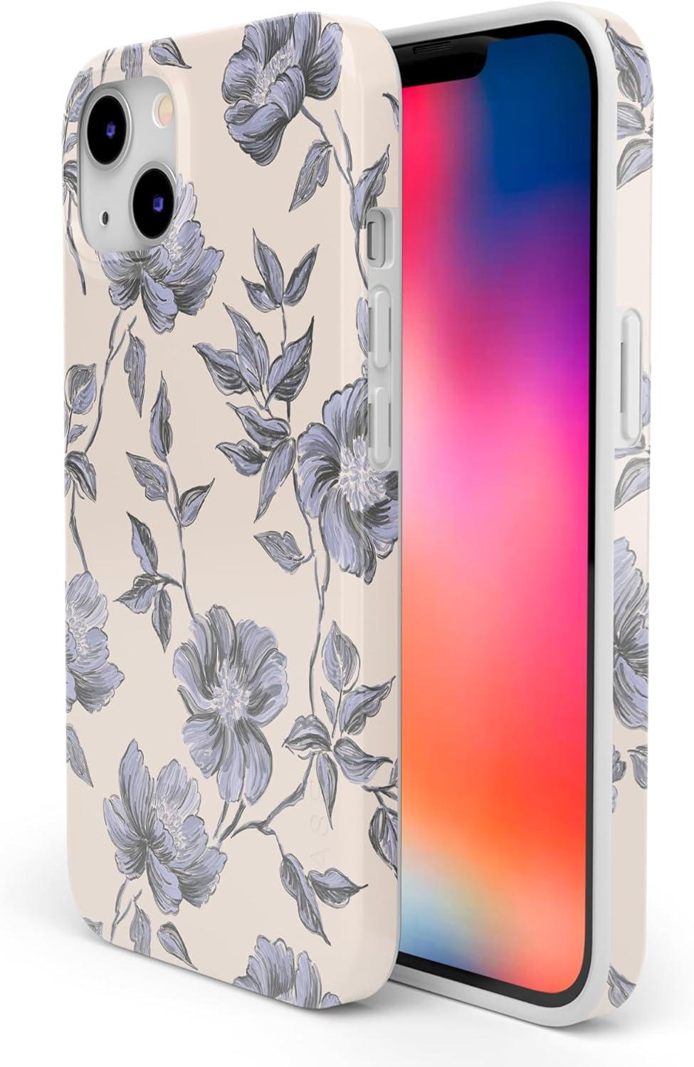 Casely iPhone 13 Case | Moody Monochrome | Twilight Flora | Compatible with MagSafe | Classic Ultra Thin Design(Ink & Iris | Vintage Floral)