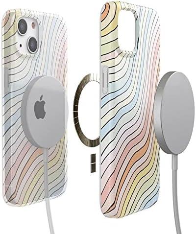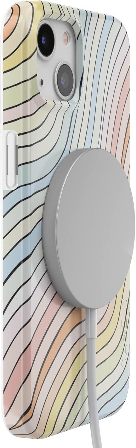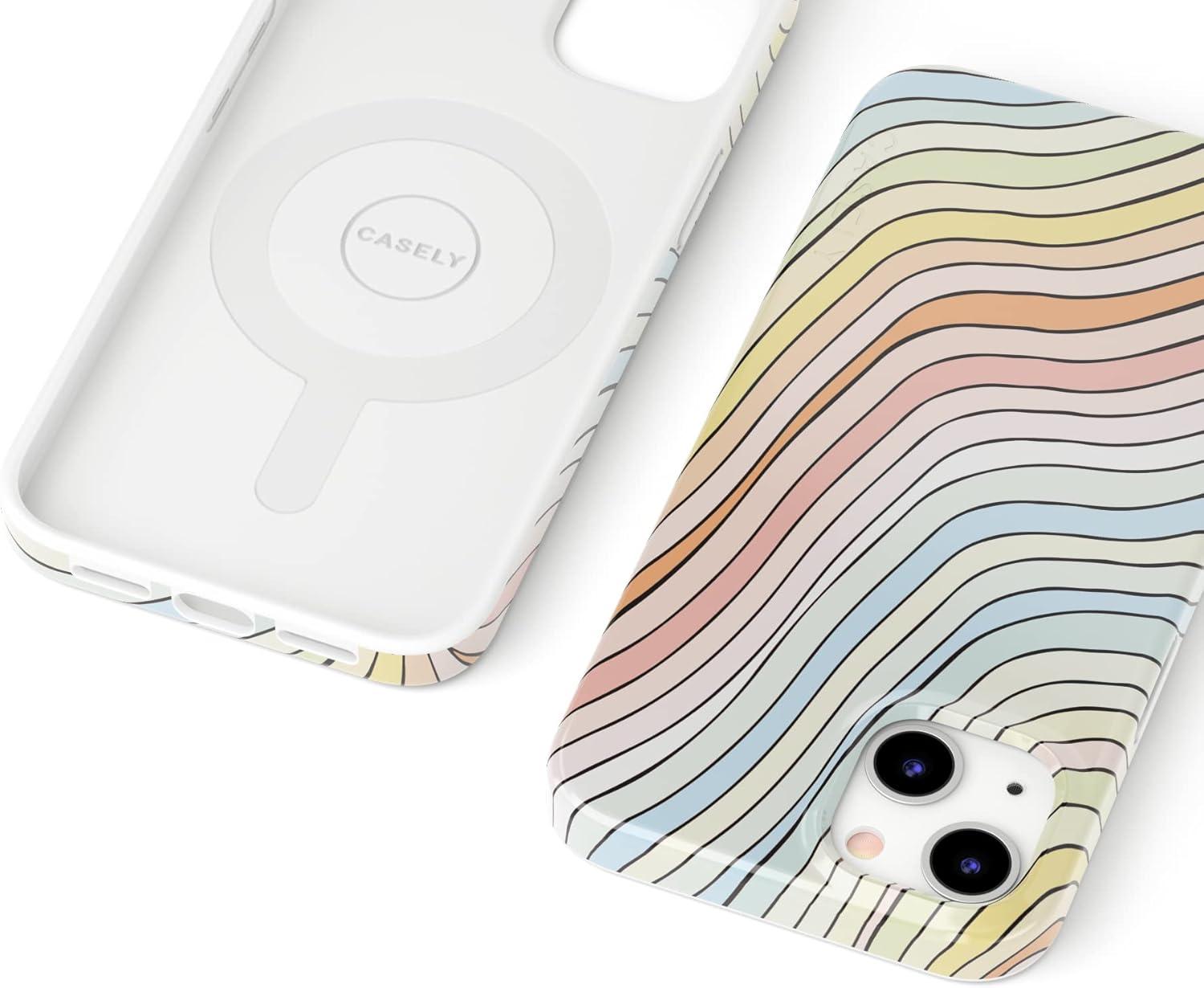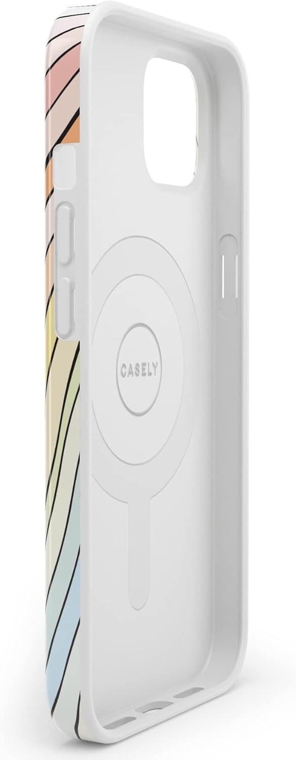 Casely iPhone 13 Case | Moody Monochrome | Twilight Flora | Compatible with MagSafe | Classic Ultra Thin Design(Ride The Wave | Pastel Rainbow Lined)