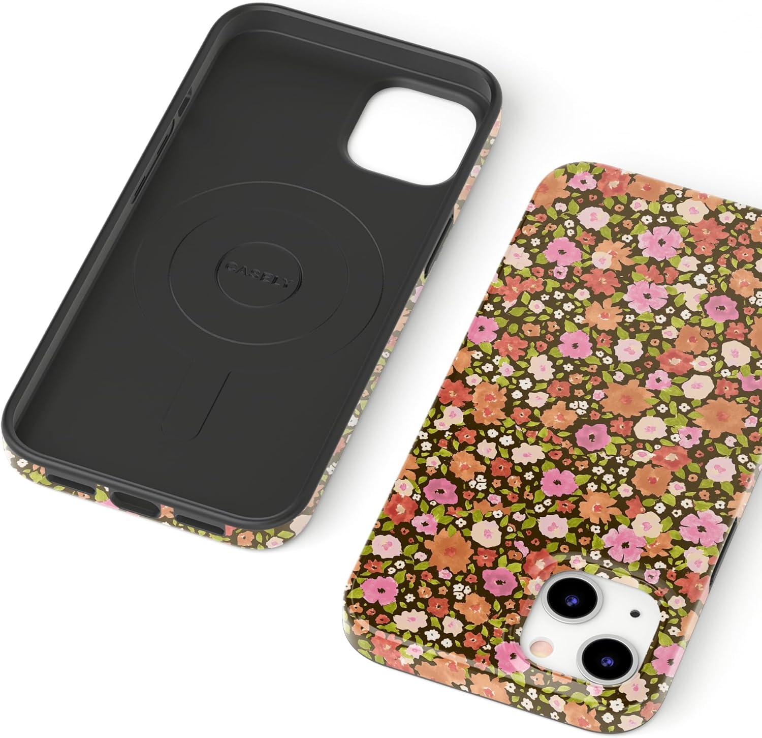 Casely iPhone 13 Case | Moody Monochrome | Twilight Flora | Compatible with MagSafe | Classic Ultra Thin Design(Rustic Roses | Boho Bouquet)