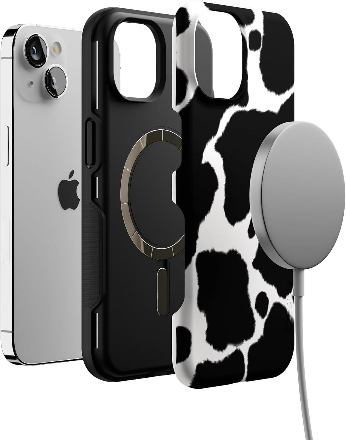 Casely iPhone 13 Case | Twilight Flora | Moody Monochrome | Bold Protective Design | Compatible with MagSafe(Black White)