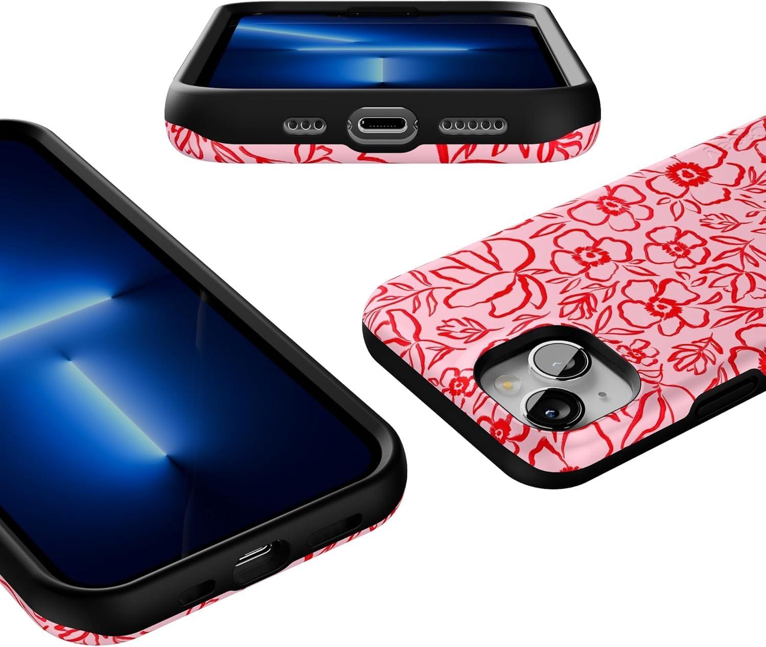 Casely iPhone 13 Case | Twilight Flora | Moody Monochrome | Bold Protective Design | Compatible with MagSafe(Blush Garden | Floral Doodle)