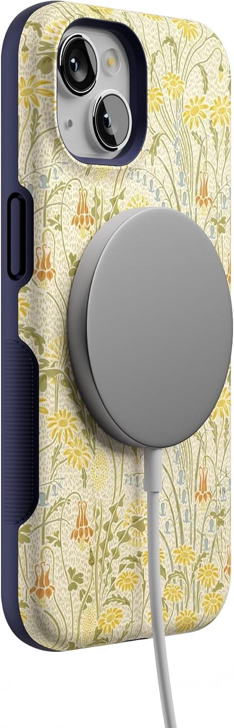Casely iPhone 13 Case | Twilight Flora | Moody Monochrome | Bold Protective Design | Compatible with MagSafe(Boho Blooms | Golden Floral)
