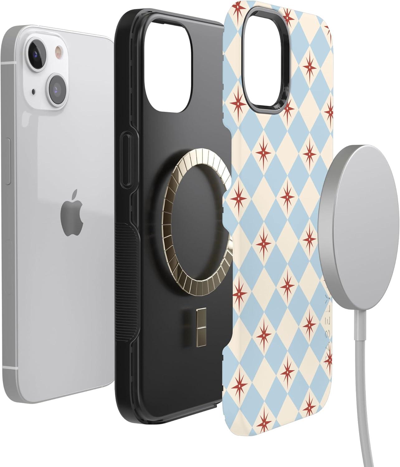 Casely iPhone 13 Case | Twilight Flora | Moody Monochrome | Bold Protective Design | Compatible with MagSafe(Chelsea Checker | Starlight Tiles)