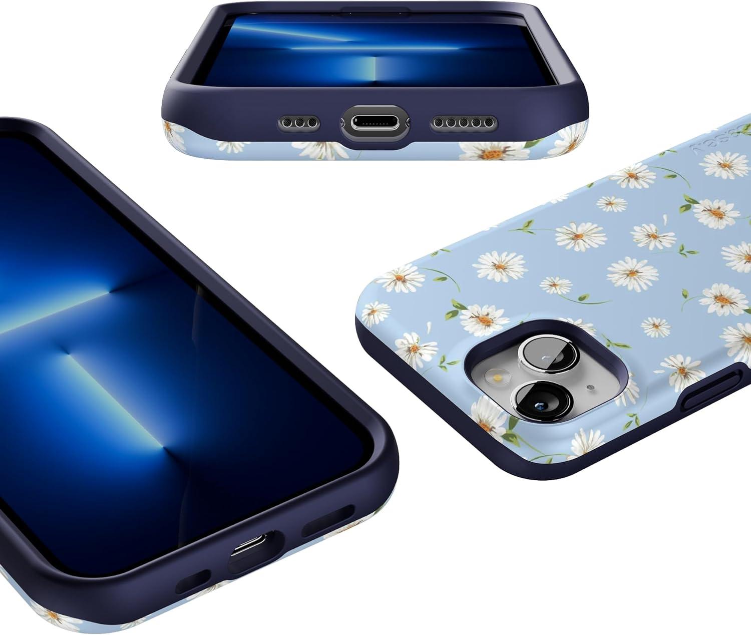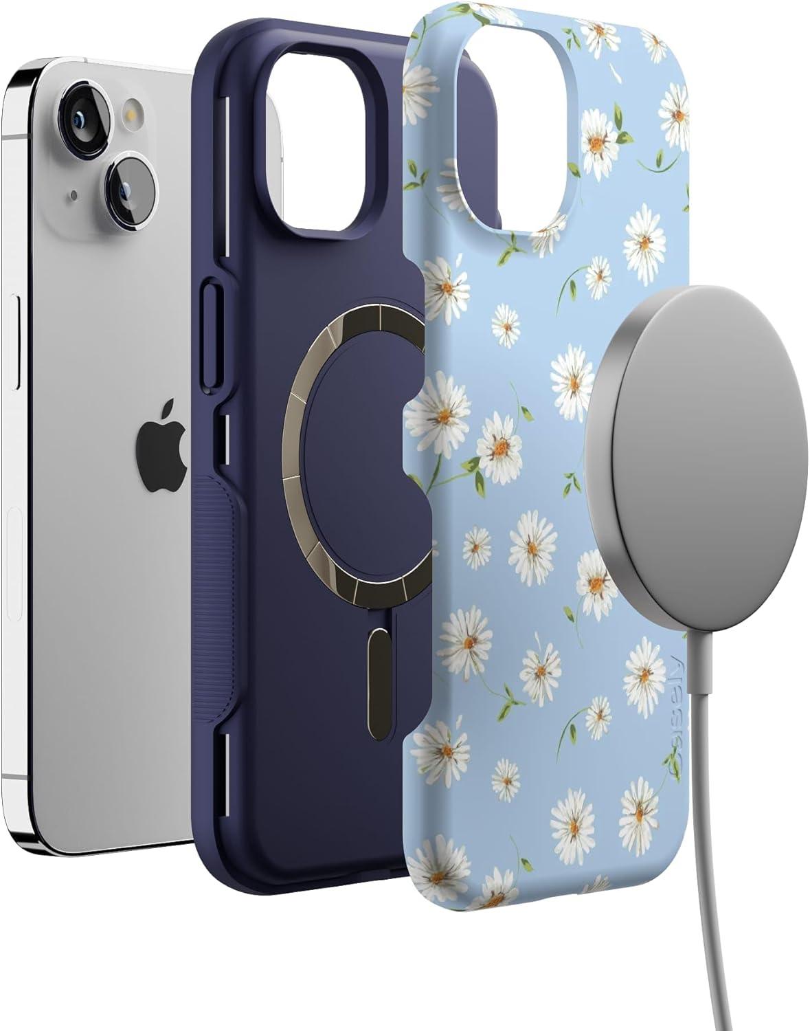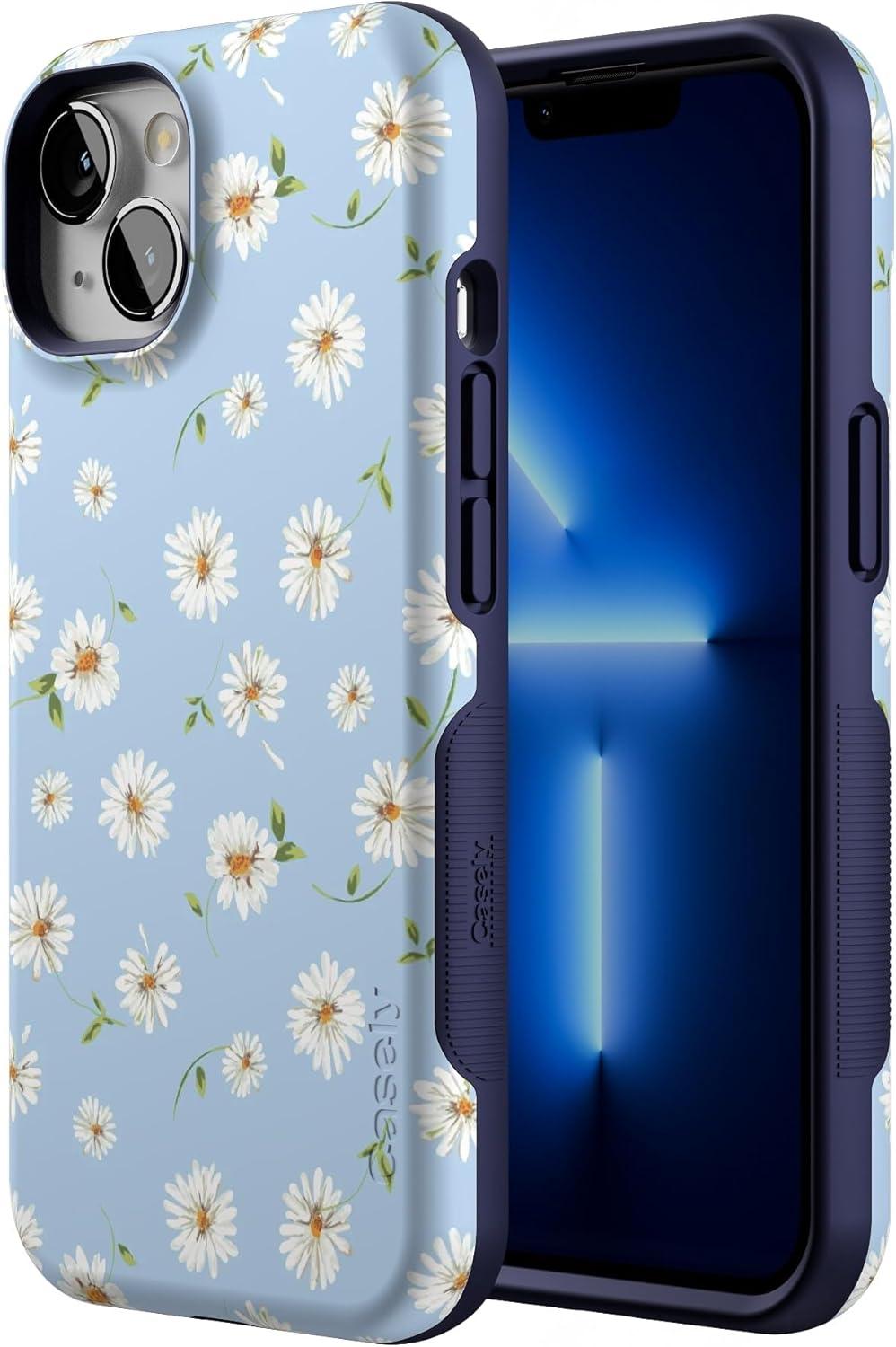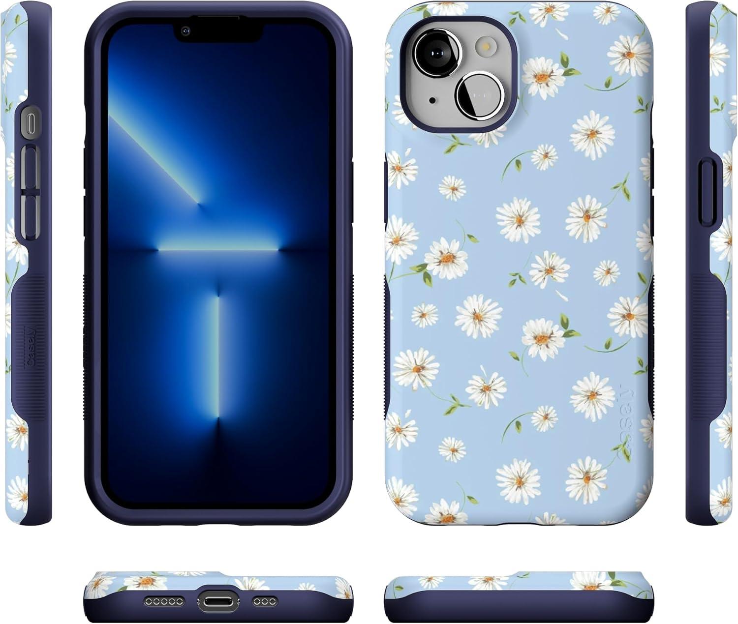 Casely iPhone 13 Case | Twilight Flora | Moody Monochrome | Bold Protective Design | Compatible with MagSafe(Daisy Daydream | Baby Blue Floral)