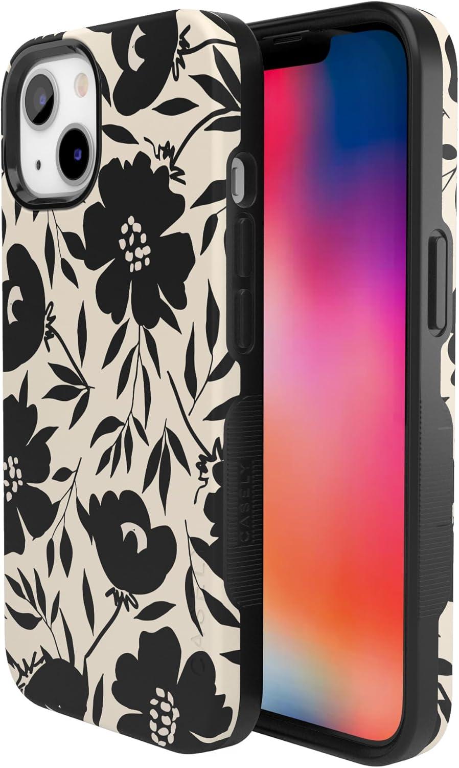 Casely iPhone 13 Case | Twilight Flora | Moody Monochrome | Bold Protective Design | Compatible with MagSafe(Dark Fantasy | Floral)
