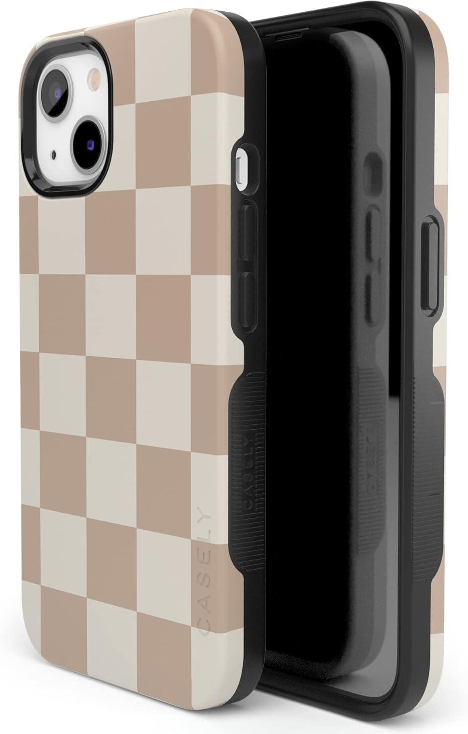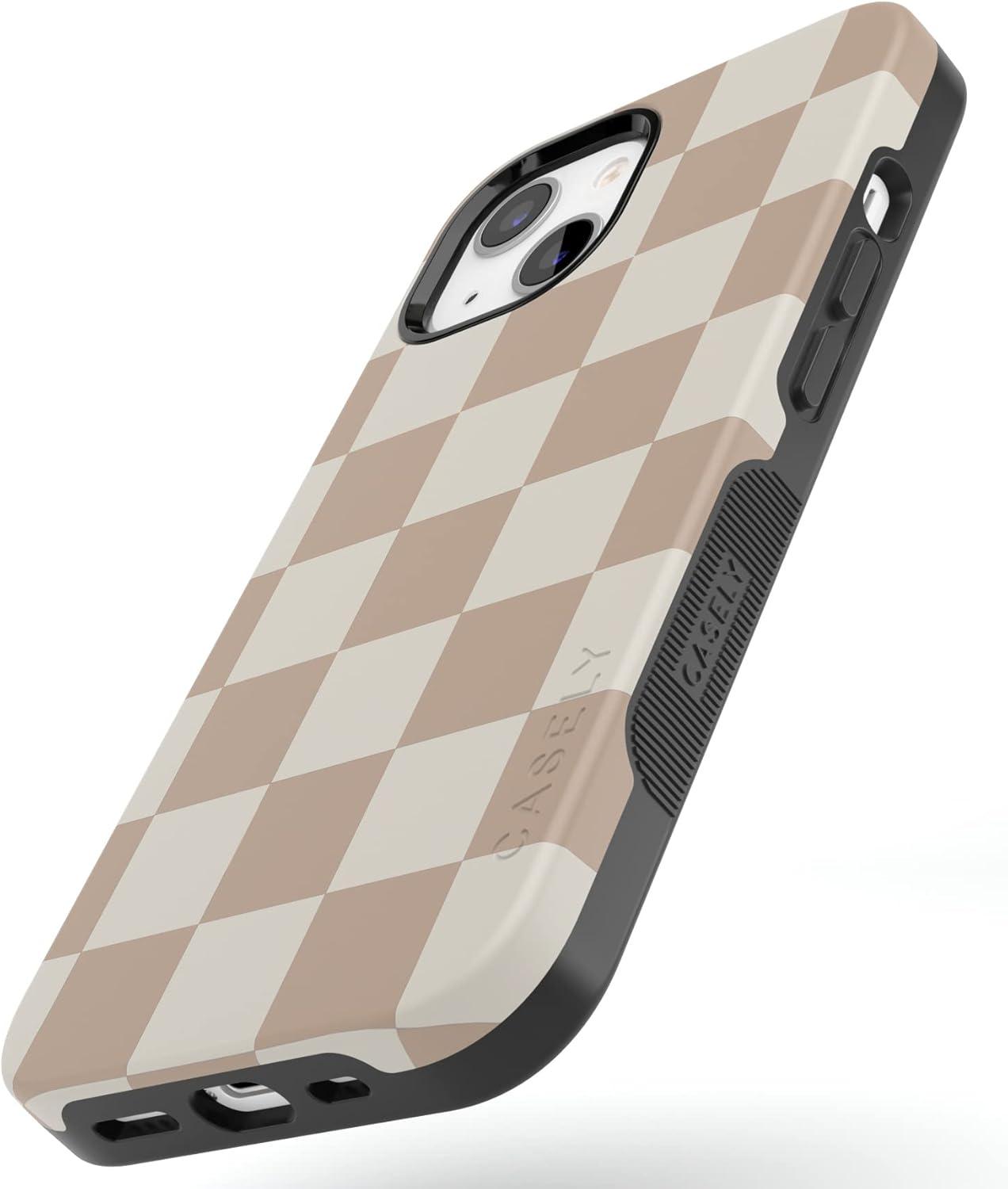 Casely iPhone 13 Case | Twilight Flora | Moody Monochrome | Bold Protective Design | Compatible with MagSafe(Fit Check | Neutral Checkerboard)