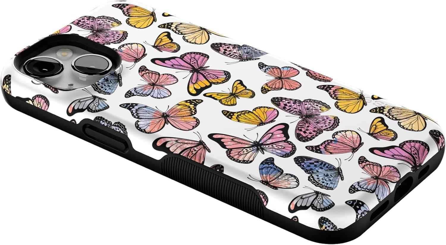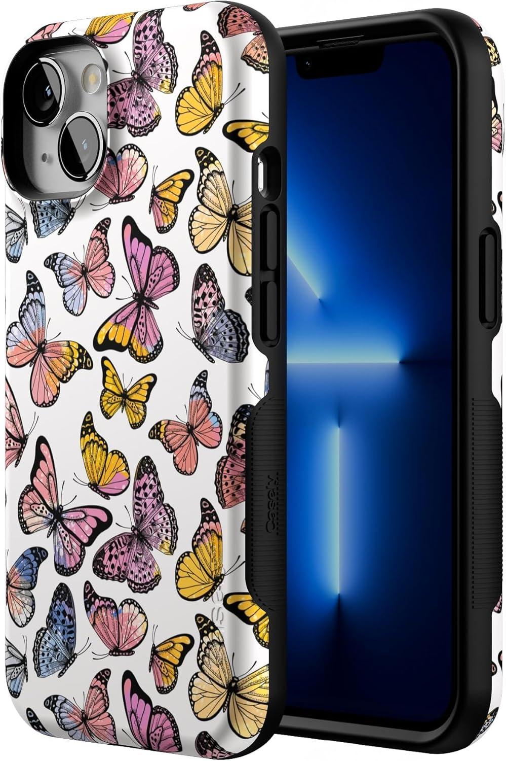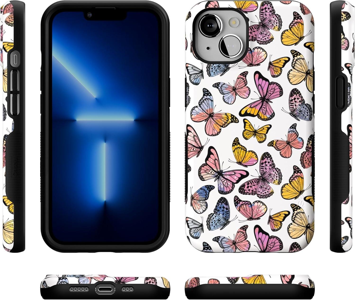 Casely iPhone 13 Case | Twilight Flora | Moody Monochrome | Bold Protective Design | Compatible with MagSafe(Free Spirit | Rainbow Butterfly)