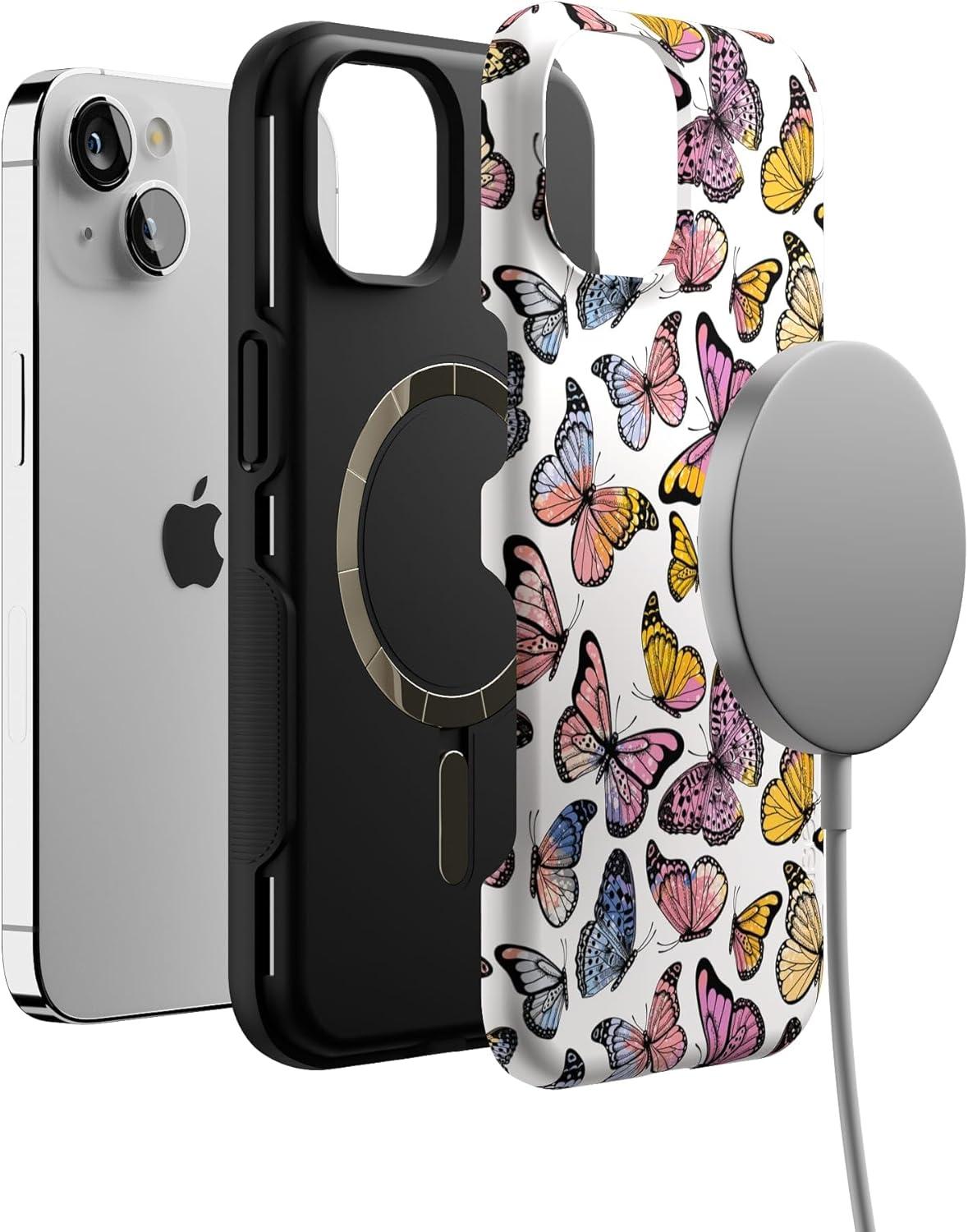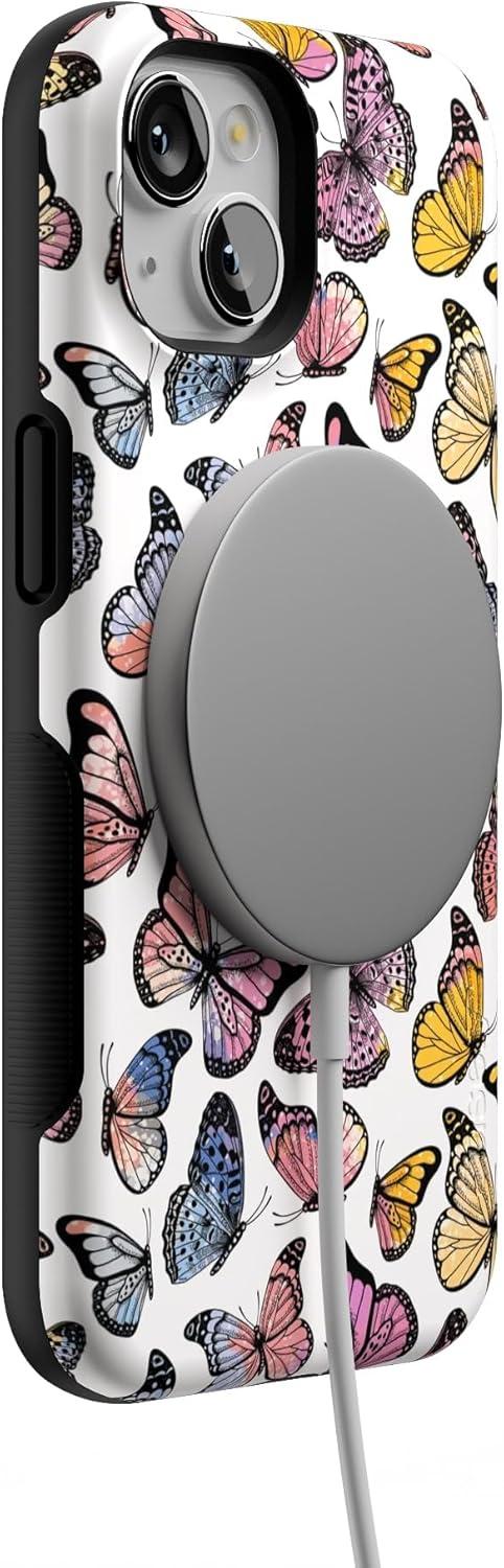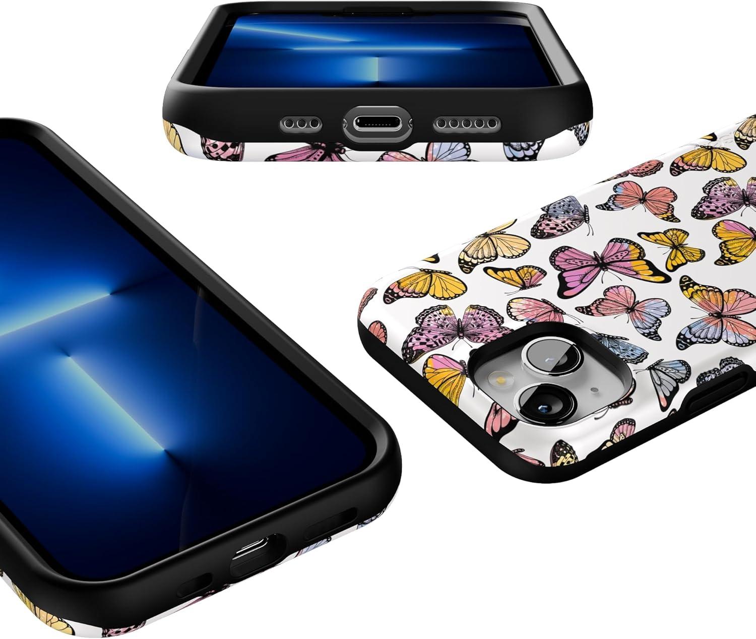 Casely iPhone 13 Case | Twilight Flora | Moody Monochrome | Bold Protective Design | Compatible with MagSafe(Free Spirit | Rainbow Butterfly)