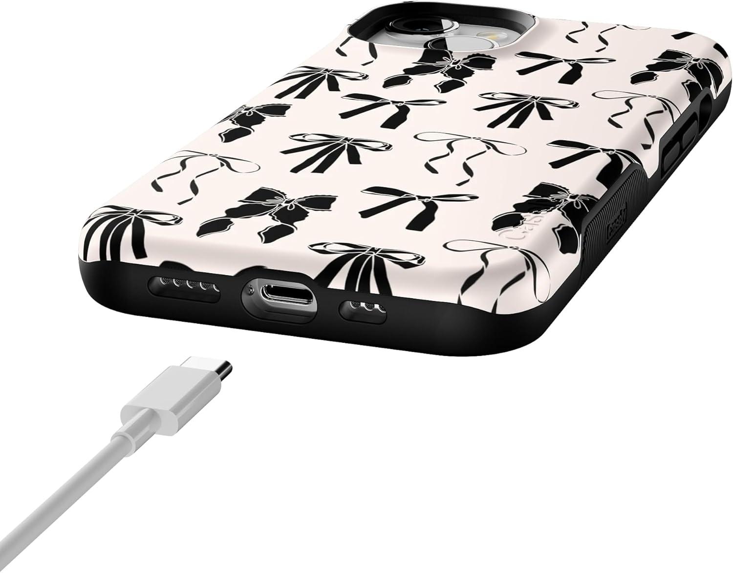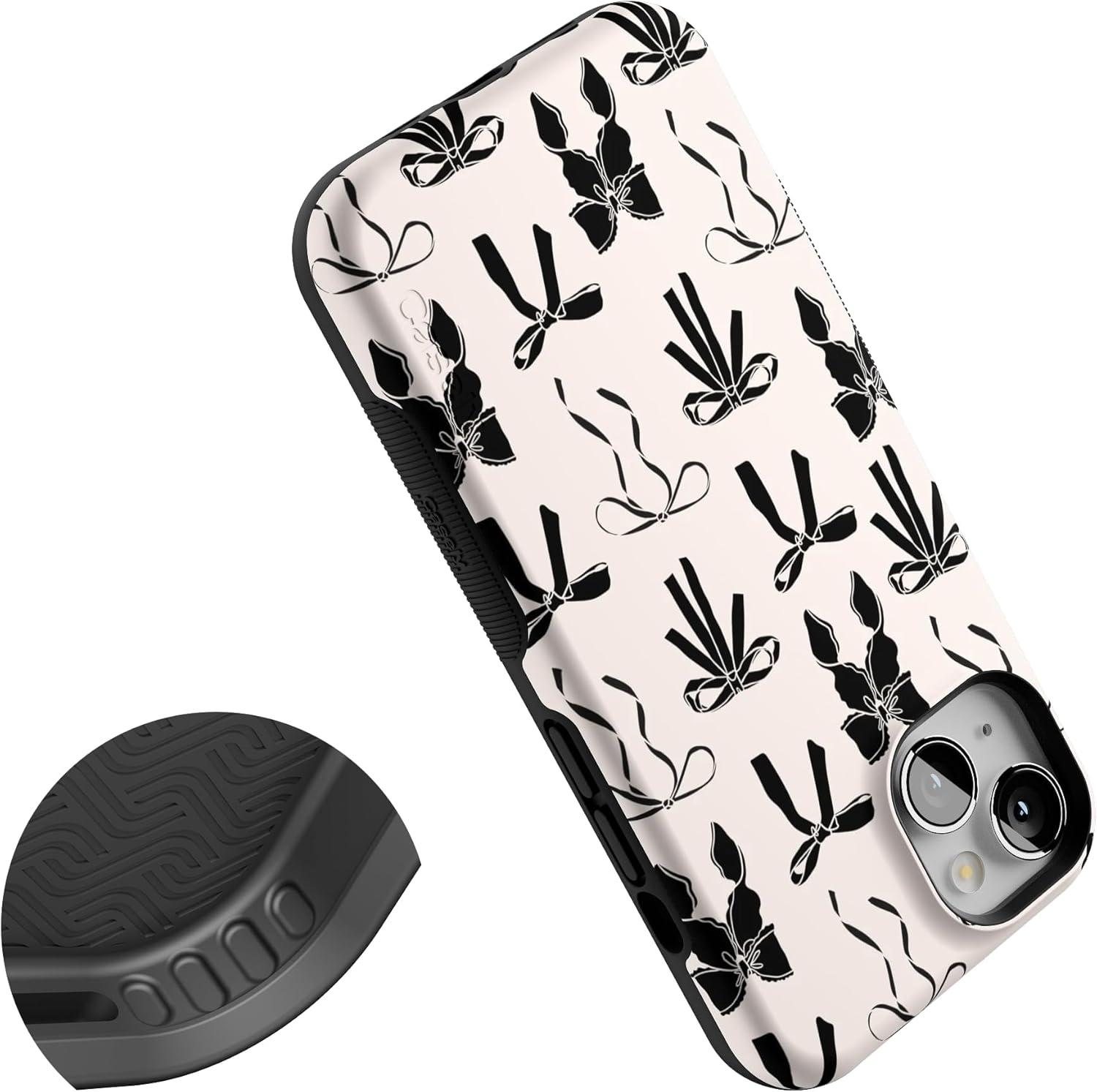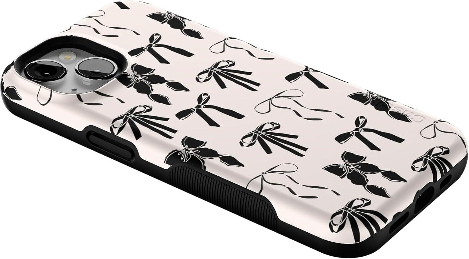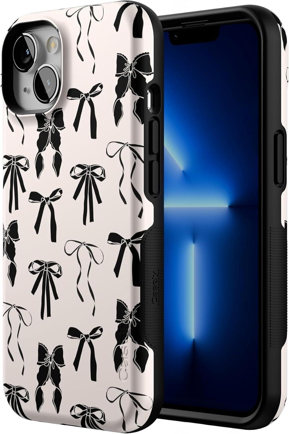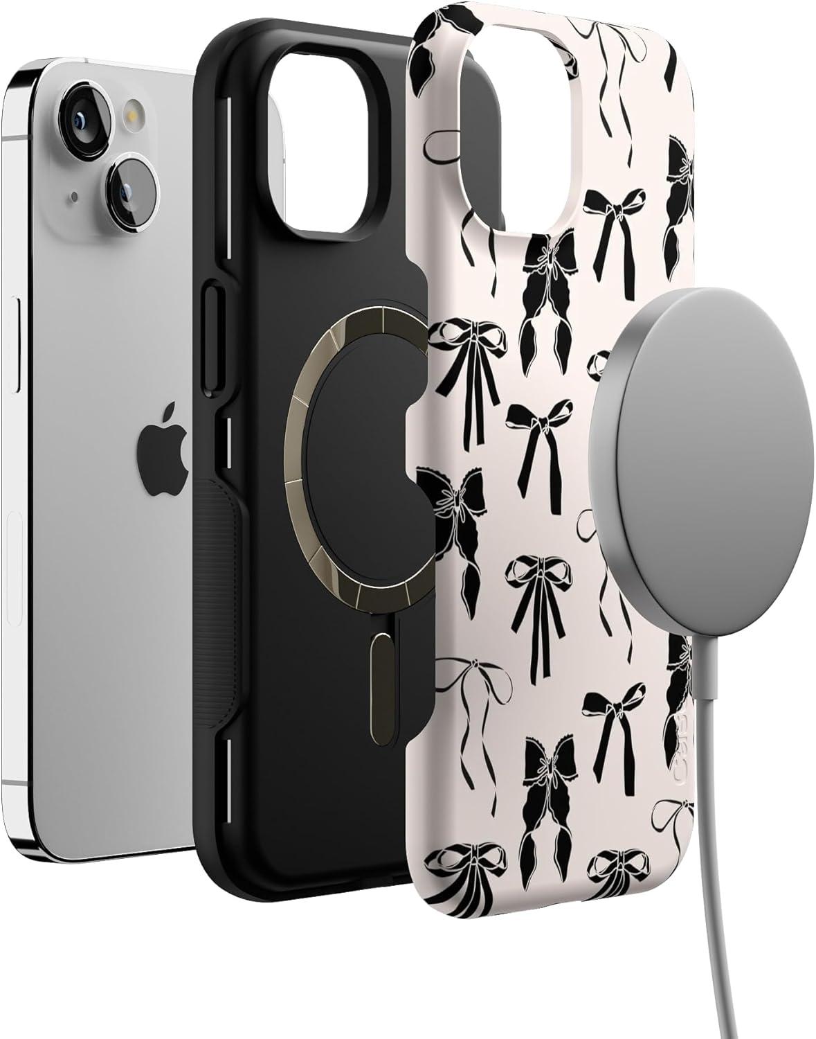 Casely iPhone 13 Case | Twilight Flora | Moody Monochrome | Bold Protective Design | Compatible with MagSafe(Goth Girlie | Black Bows)