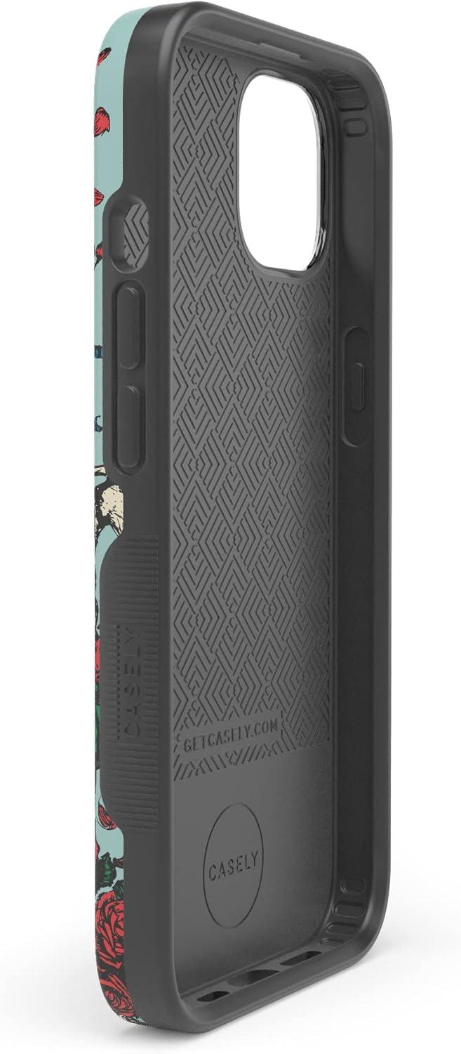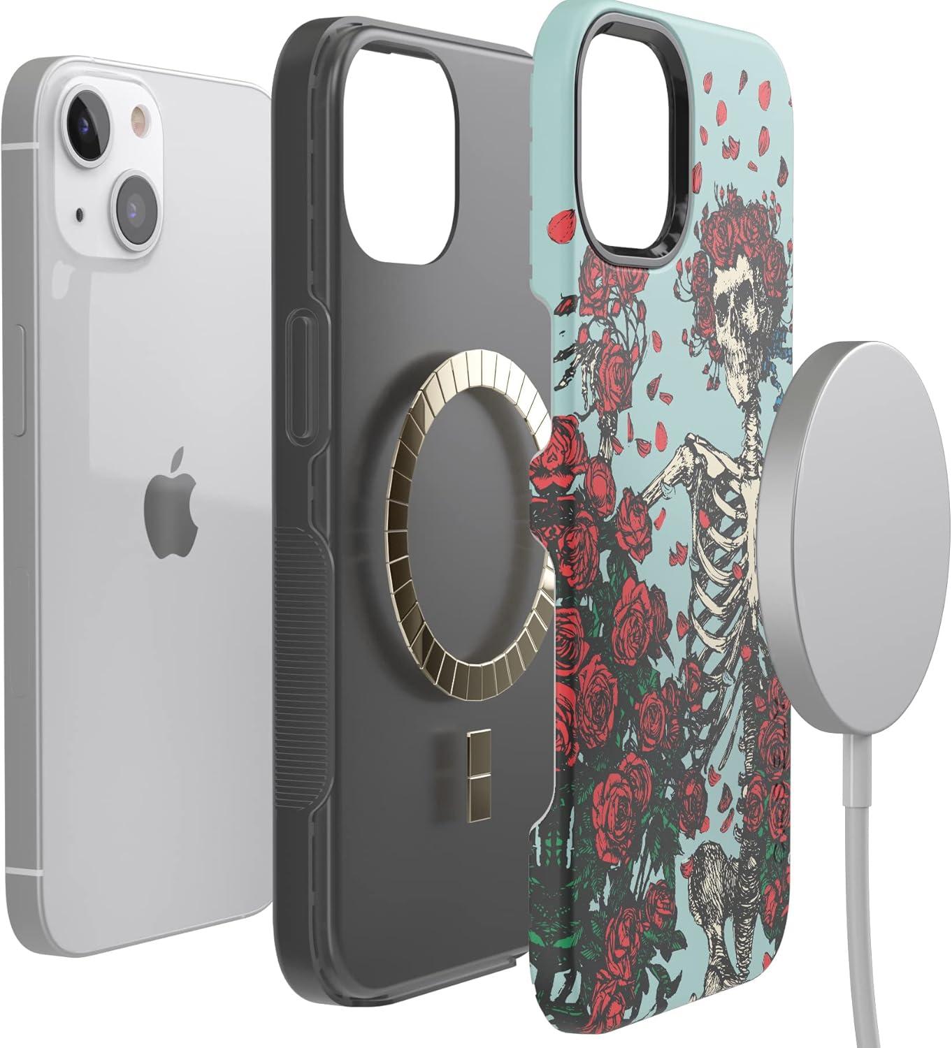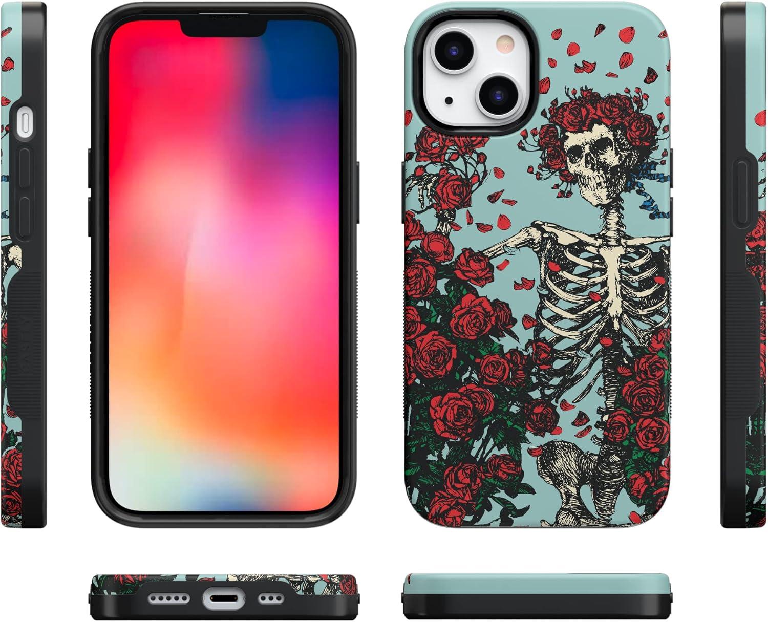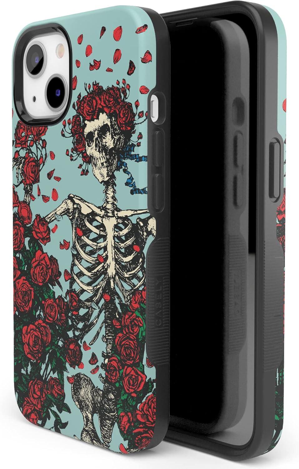 Casely iPhone 13 Case | Twilight Flora | Moody Monochrome | Bold Protective Design | Compatible with MagSafe(Grateful Dead | Forever Grateful | Skeleton Floral)