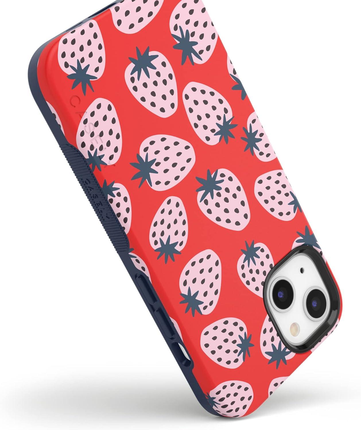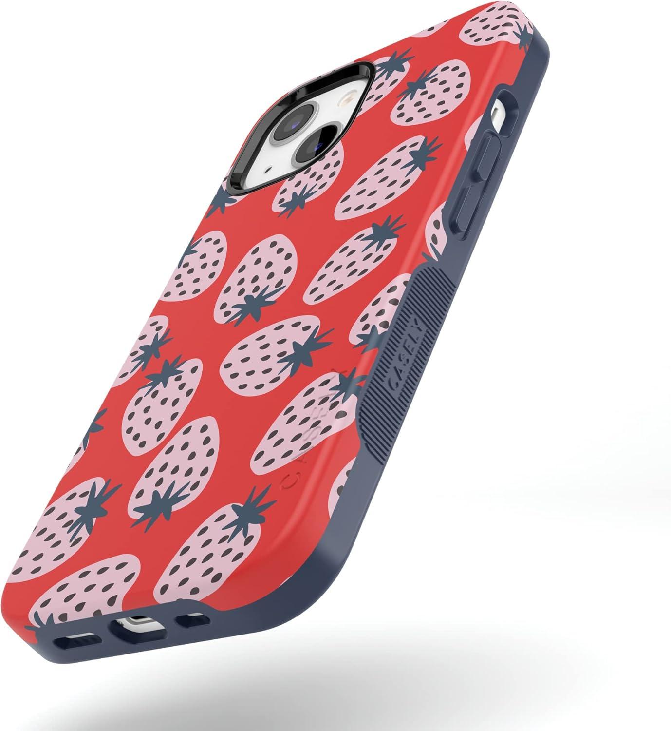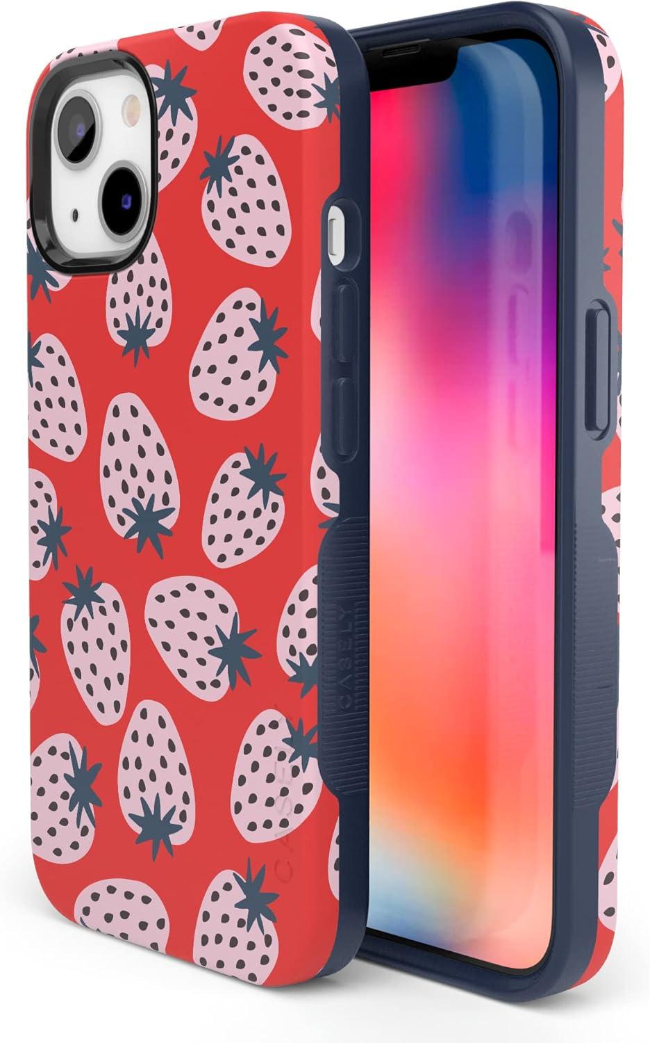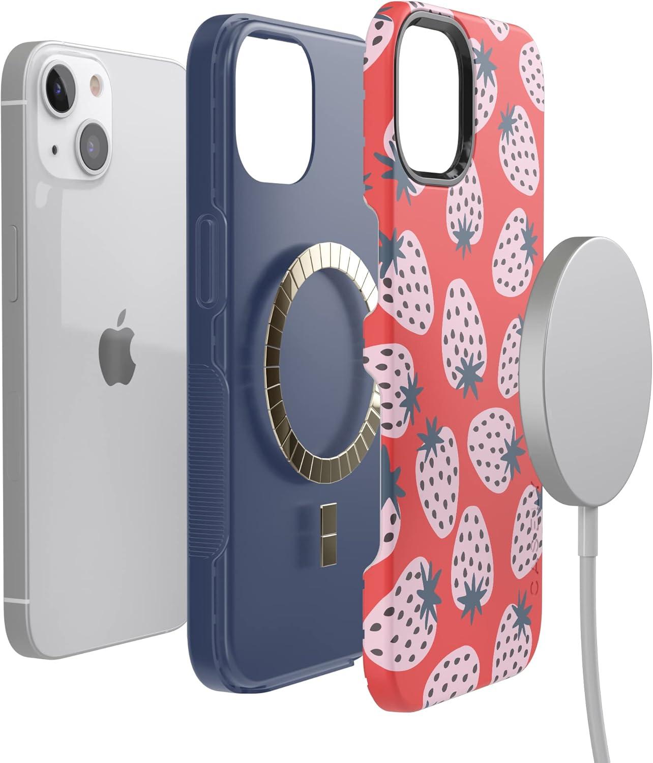 Casely iPhone 13 Case | Twilight Flora | Moody Monochrome | Bold Protective Design | Compatible with MagSafe(I’d Pick You | Red Strawberry)