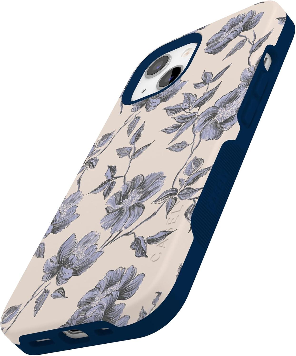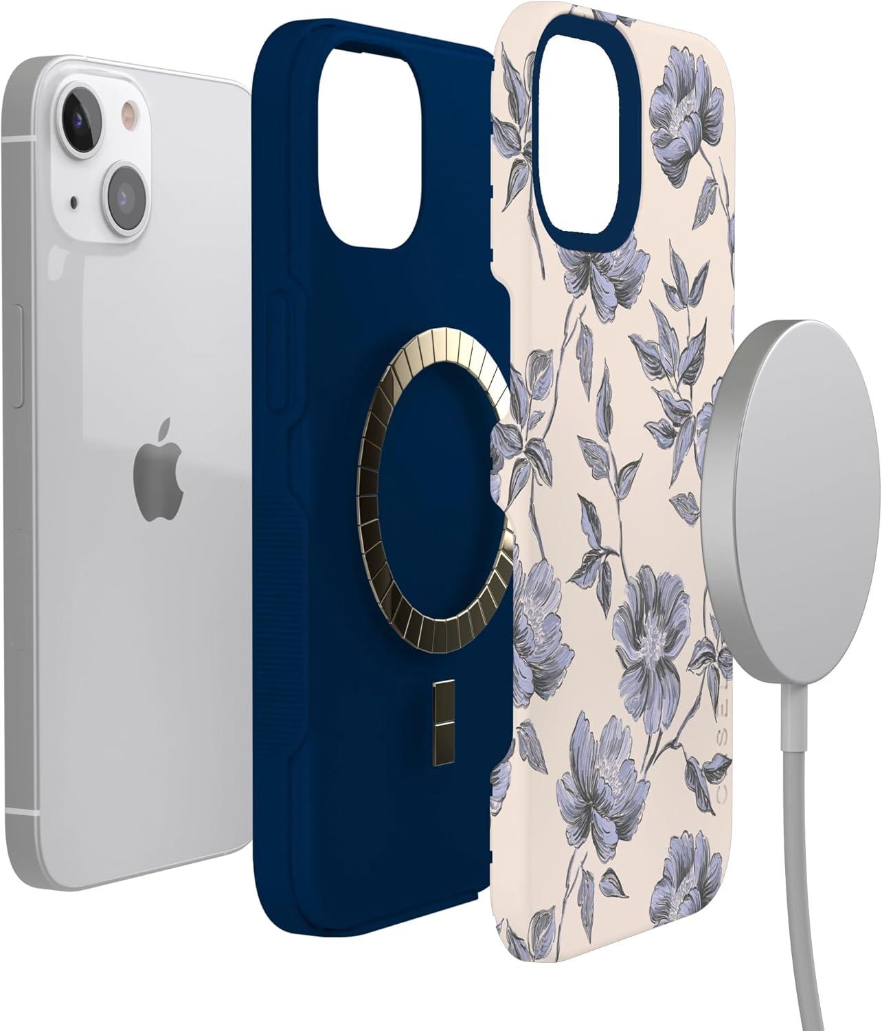 Casely iPhone 13 Case | Twilight Flora | Moody Monochrome | Bold Protective Design | Compatible with MagSafe(Ink & Iris | Vintage Floral)